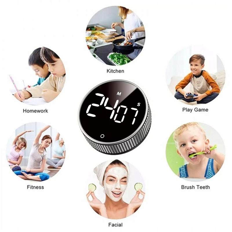 Це набагато більше, ніж просто кухонний таймер! Ідеально підходить для навчання (допомагає зосередитися), фітнес-вправ, настільних ігор, ділових зустрічей, косметичних процедур, а також як інструмент для підтримки тайм-менеджменту дітьми. Має функцію зворотного відліку та підрахунку (секундомір).