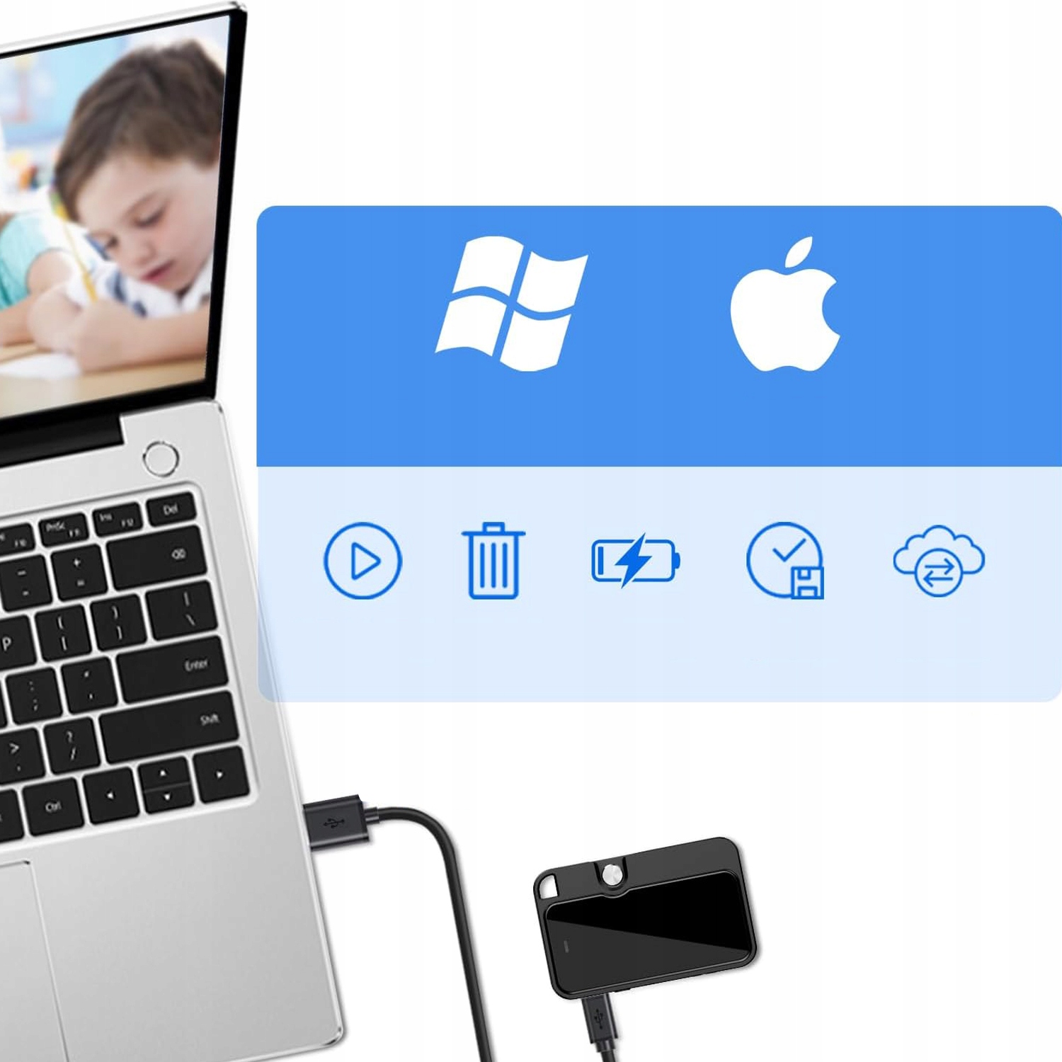 - 🎵Вбудований кабель передачі даних типу C забезпечує плавну та швидку передачу даних, легке підключення диктофона до смартфону та просте відтворення, видалення та резервне копіювання записаних файлів. Якщо диктофон потребує підключення до iPhone, у комплект входить сертифікований адаптер MFI (не сертифікований).