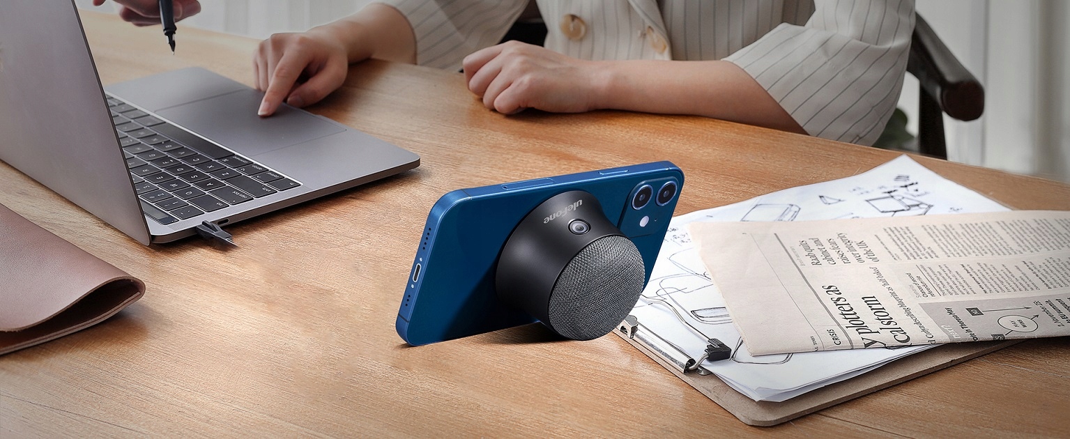 динамік сумісний з телефонами, які мають роз'єм Magsafe, такі як iPhone 12, 13, 14 та новітні та з колішем Magni -телефону та аксесуарів Umagnet.