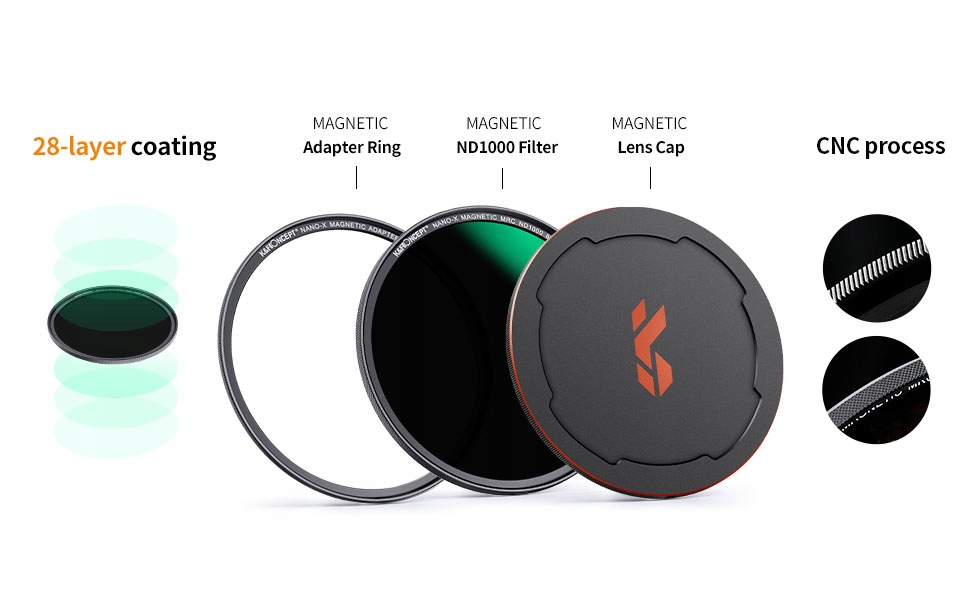 - технологія 28-шарового покриття значно зменшує відблиски та ореоли на об’єктиві, роблячи фільтр стійким до пилу та подряпин, цвіль і гідрофобний, маслостійкий.