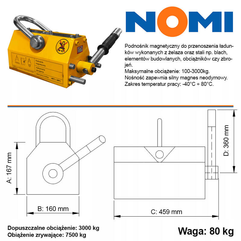 МАГНІТНИЙ ГРІПЛІЙТ 3000кг NOMI PML-30