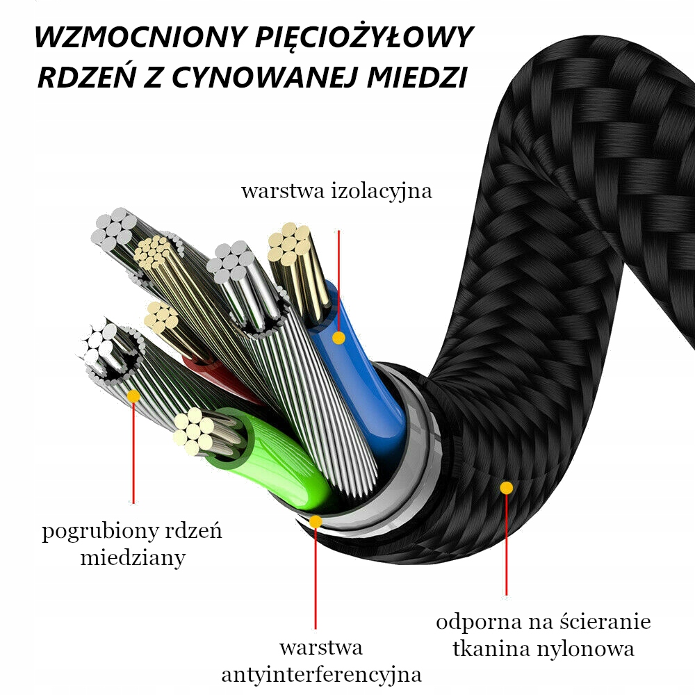 - Матеріал кабелю: плетений нейлон + металевий сплав.