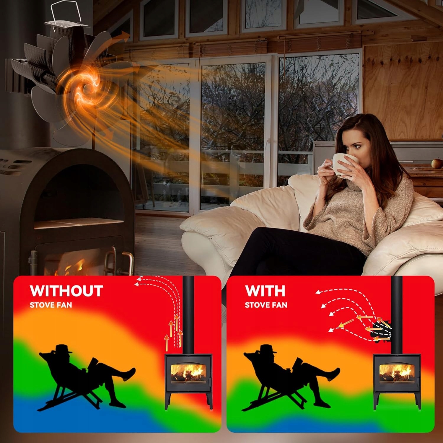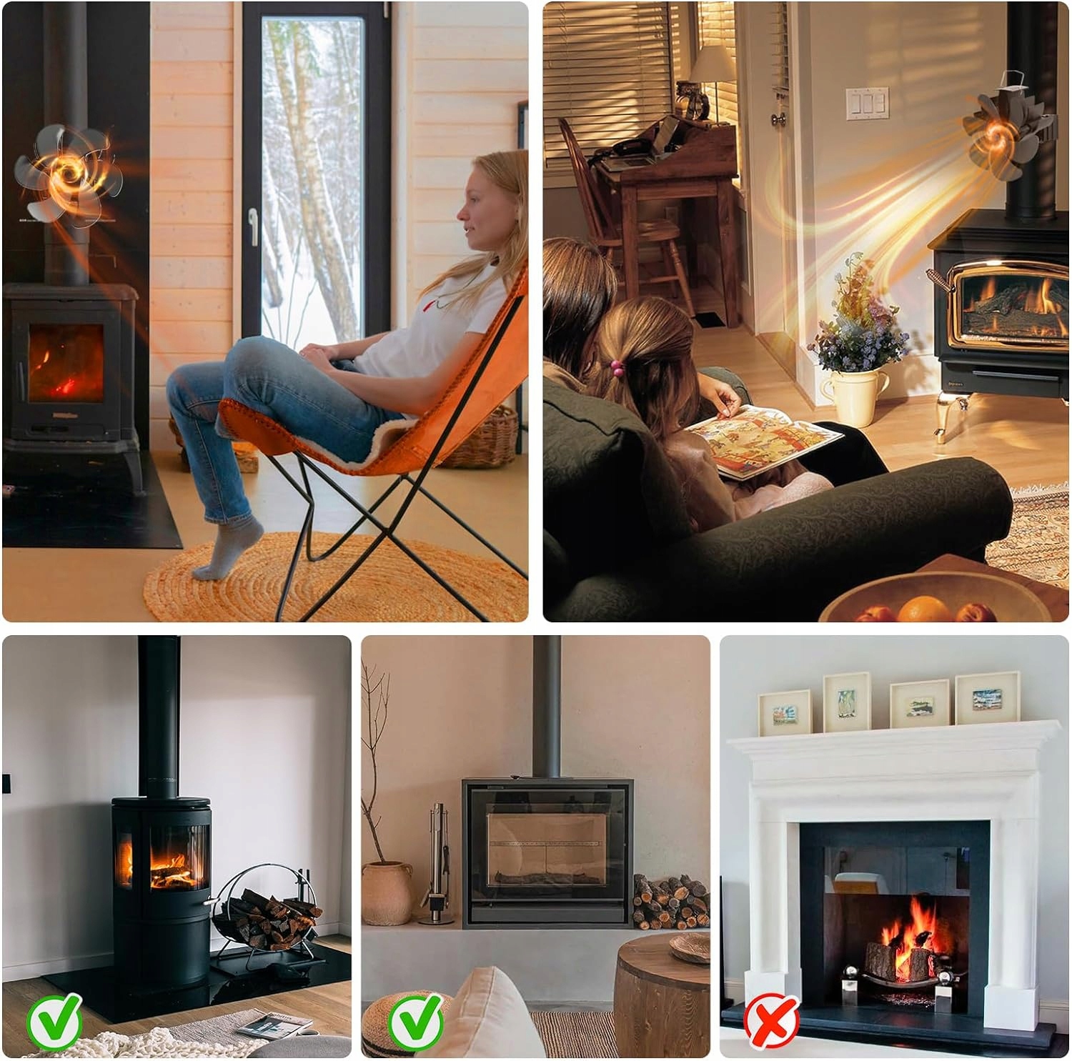 【Камінний вентилятор】: камінний вентилятор спеціально розроблений для використання в димоходах. Що вища температура димоходу, то вища ефективність вентилятора, він забезпечує циркуляцію повітря через тепло. виробляється димоходом, щоб температура в приміщенні була рівномірною для теплої зими.