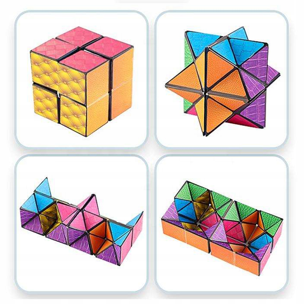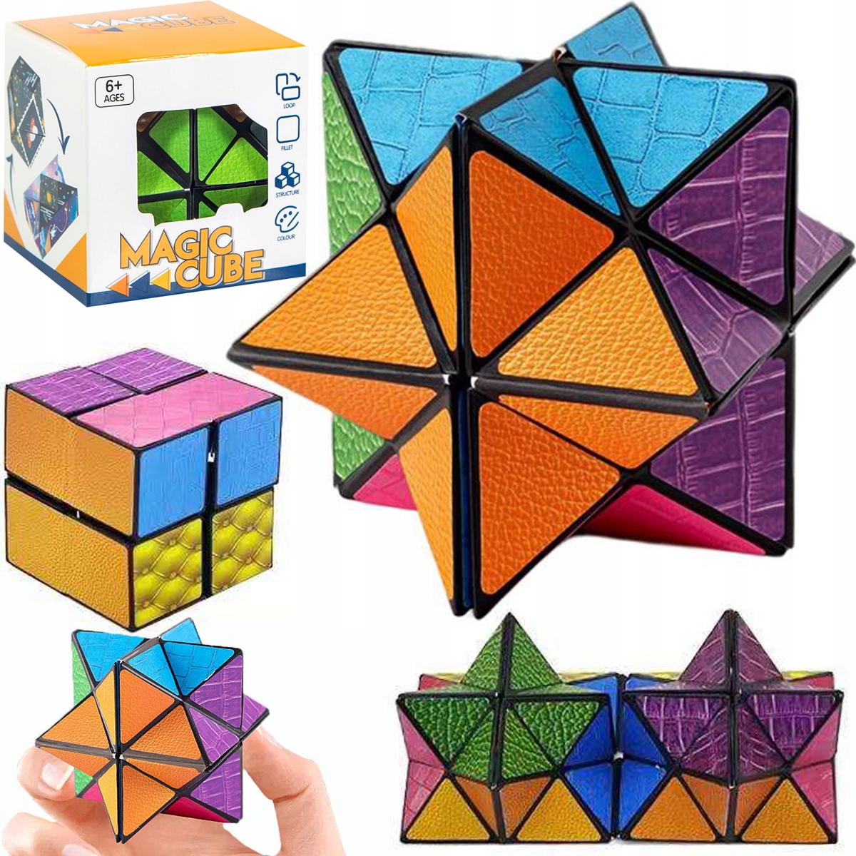 ⭐ Куб проти нескінченності -це іграшка, з якою можна влаштувати нескінченну кількість форм і фігур . Продукт складається з декількох кубів, якими ви маневруєте різними способами для створення наступних конструкцій.