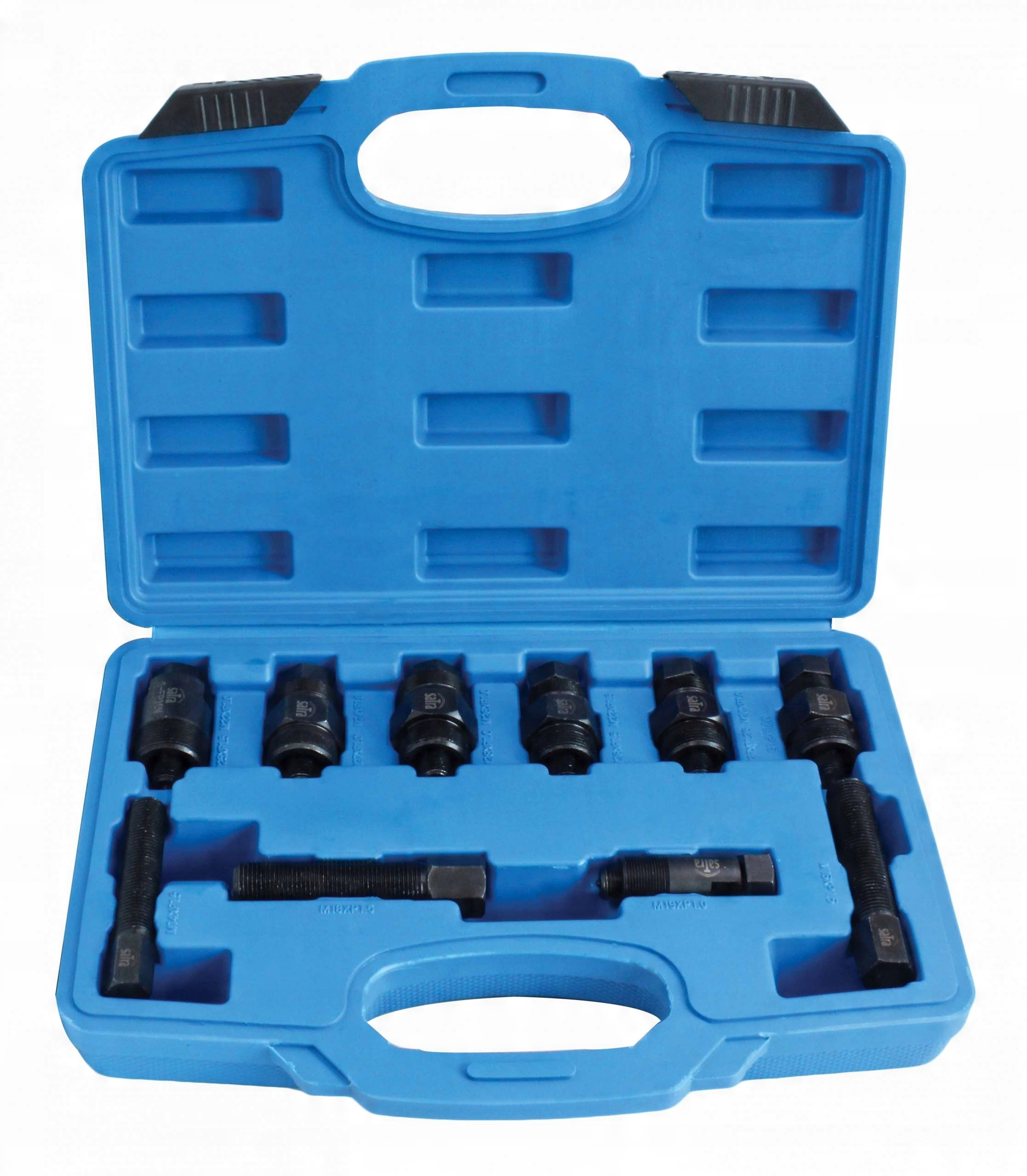 Великий набір знімачів маховика для відокремлення маховика від конуса колінчастого вала. Оснащений десятьма знімачами, п’ять з яких мають подвійний кінець, що сприяє більшому використанню. Використовується для мотоциклів марок Yamaha, Honda, Suzuki, Kawasaki, Ducati, а також для позашляхових мотоциклів і квадроциклів.