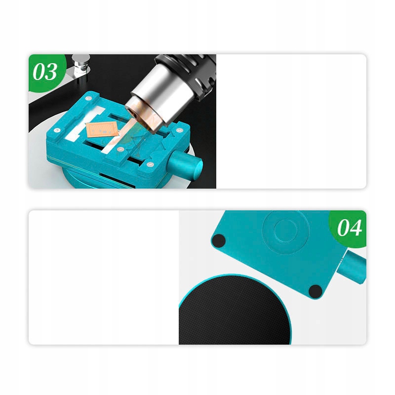 - 360 ° обертовий механізм: дозволяє повним контролем над елементом, який неоцінений під час складного ремонту. Завдяки гладкому руху ви можете швидко відрегулювати положення системи. Ви можете працювати з великою точністю, не побоюючись змін. Ідеальний інструмент для паяльних та інших процесів, що вимагають високої температури. , жорсткі диски та інші компоненти. Li>