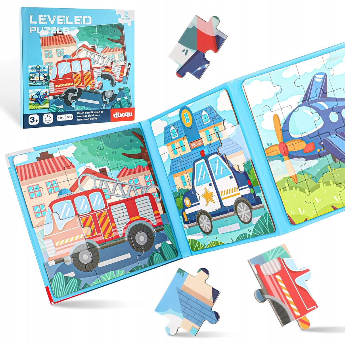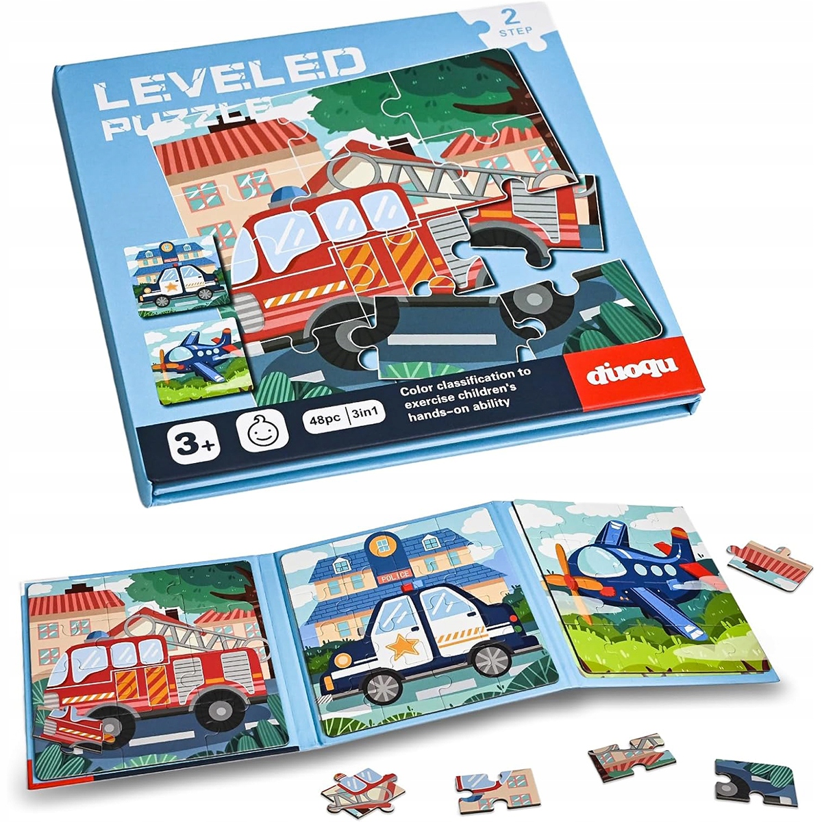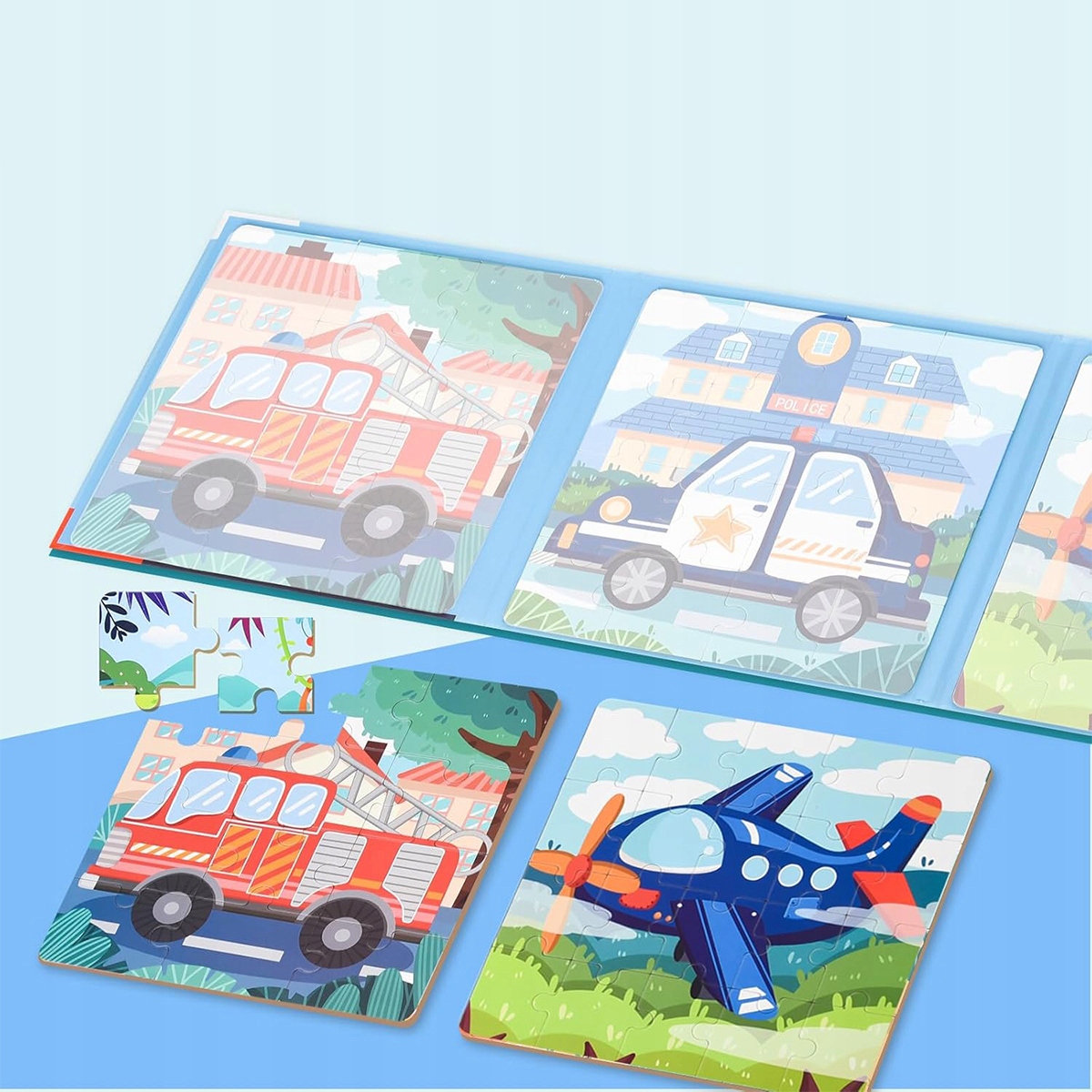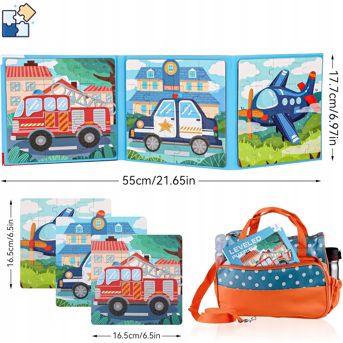 Кожна книга містить три сторінки з різними візерунками, пазл із зображенням пожежної машини/поліцейського літака/літака, 12-16-20 елементів❤️ з різним ступенем складності.