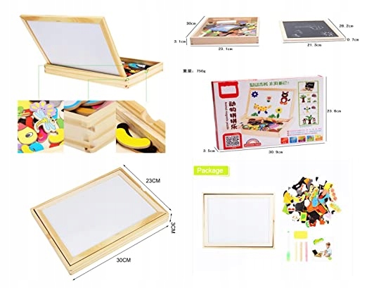 p>Дошка має дві сторони: білу та чорну, тому діти можуть створювати різні візерунки та зображення за допомогою маркера чи магнітів. Набір різнокольорових дерев’яних елементів і магнітів із тваринами, формами та природою заохочуватимуть дітей до довгих і творчих ігор.