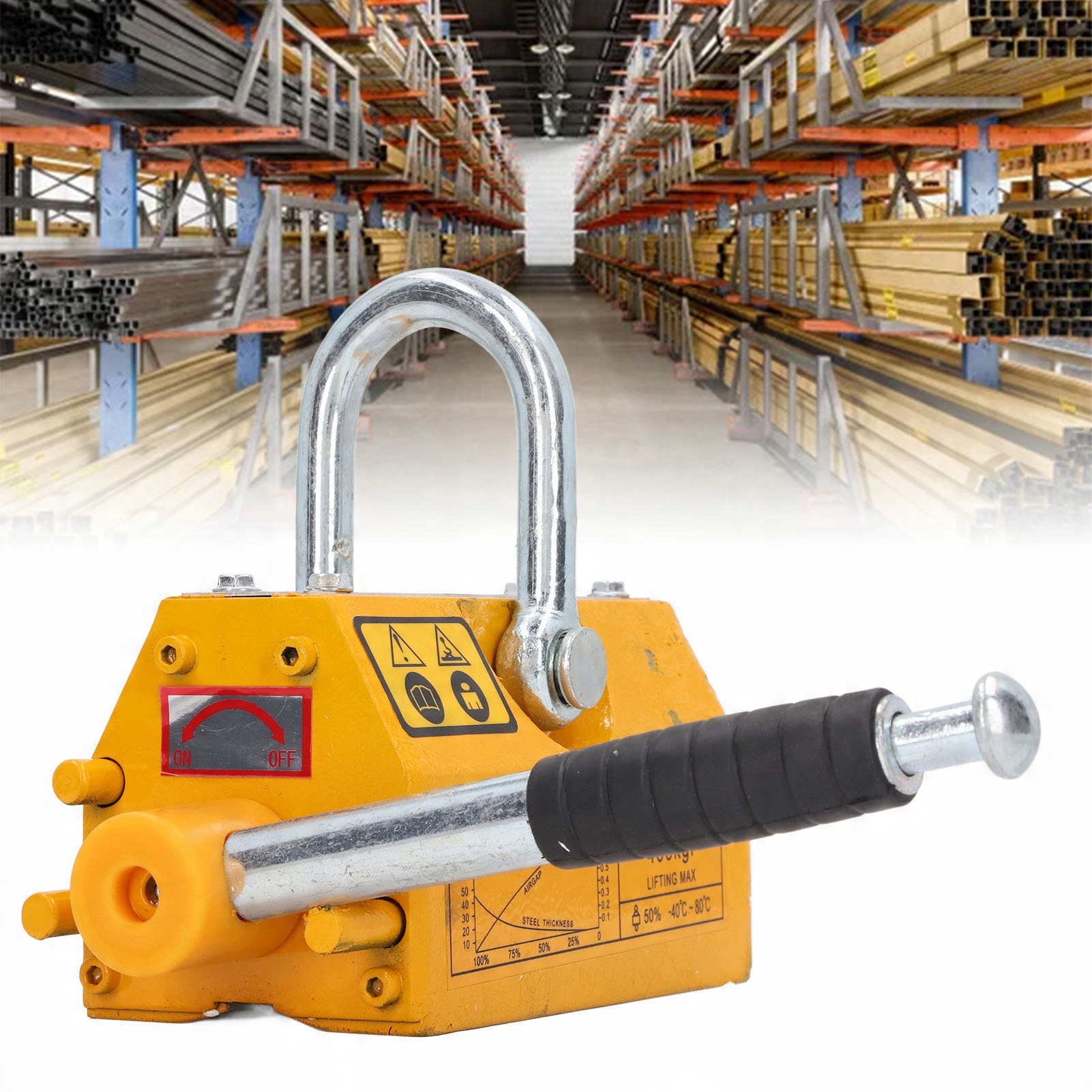 2. [Підвищена безпека] Магнітний підйом має ручку зіткнення з конструкцією безпеки, який має механізм блокування, легко вмикати і вимикати, повертаючи ручку вліво та вправо.