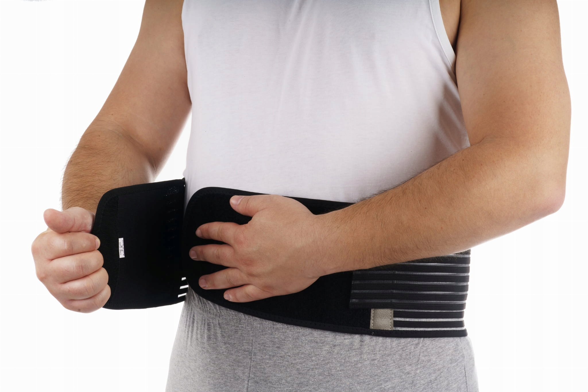 Пояс застібається на липучку спереду, має два додаткових ремінця, що застібаються на липучку спереду. Конструкція пояса не скочується, тому що в нього вшиті еластичні кісточки, дві ззаду і спереду. Внутрішня частина покрита протиковзким силіконом. Стабілізатор можна використовувати безпосередньо на шкірі, добре пропускає повітря та вбирає піт.