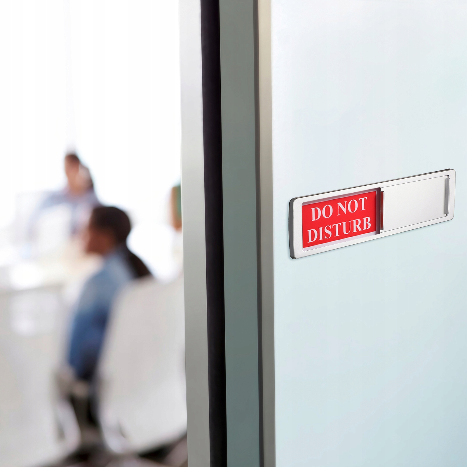 Вивіска на дверях має яскравий колір фону з білими літерами, що допомагає нагадувати людям не бути нав’язливими чи привітними незалежно від кімнати. І це легко побачити навіть здалеку.
