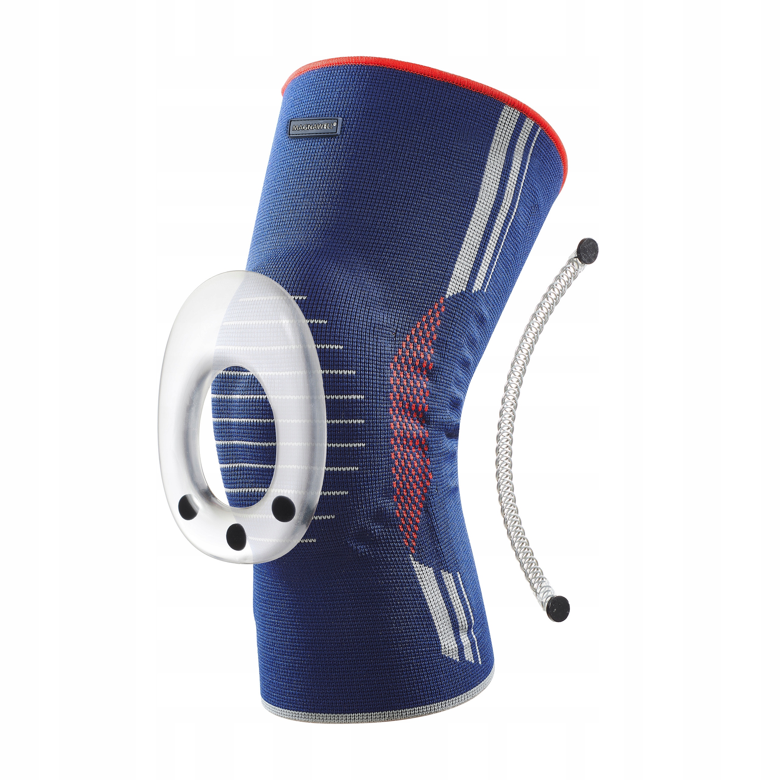 Використання силіконового кільця з нанесеними магнітами навколо колінної чашечки підтримує її в природному положенні, а також м’яко масажує його площа при ходьбі. Завдяки цьому лімфедема спадає швидше. Завдяки неодимовим магнітам поліпшення місцевого кровообігу прискорює регенерацію пошкоджених тканин і зняття запалення, а біль проходить швидше. Завдяки гнучким спіральним пружинам з боків стрічки ми маємо ще більше стабільності та підтримки.