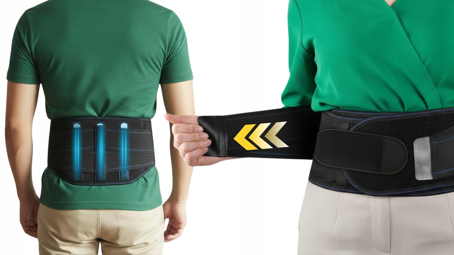- ✅ Стабілізує нижній відділ хребта - допомагає підтримувати правильну поставу тіла та розвантажує поперековий відділ хребта, забезпечуючи підтримку під час повсякденної діяльності.