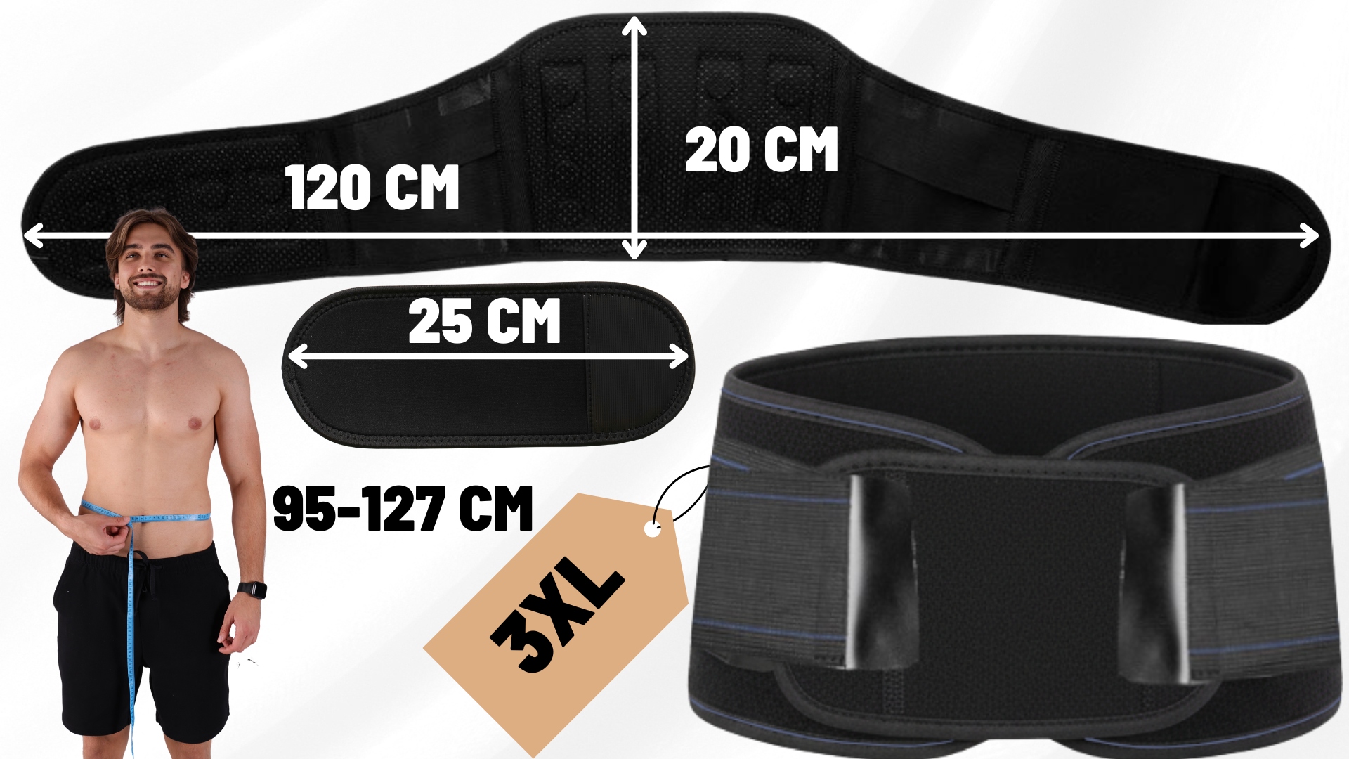- ✅ Регульована окружність за допомогою розширення - ідеальна посадка - Поперековий пояс оснащений практичним подовжувачем, який застібається на міцну липучку, що збільшує окружність талії до 7 см. Завдяки цьому ремінь також підлаштовується під людей із великим обхватом талії, забезпечуючи зручну та стабільну підтримку без тиску.
