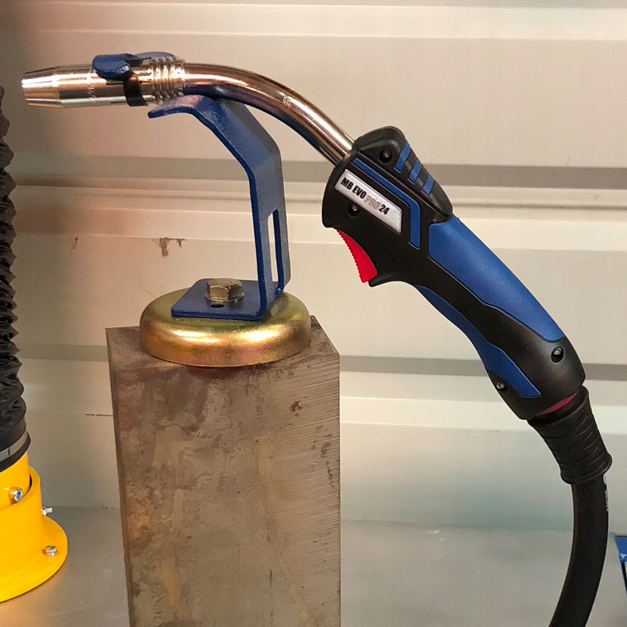 Універсальну підставку для пальника MIG MAG можна використовувати в будь-якій майстерні. Завдяки магнітній основі ви можете легко і швидко змонтувати основу і ваш зварювальний пальник MIGOMATEM буде в безпечному місці під час перерви на роботі. Це мінімізує ризик пошкодження через падіння ручки тощо.