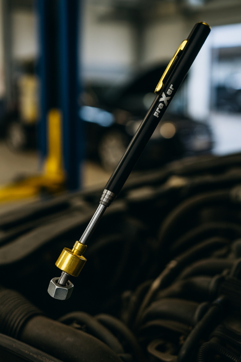 Телескопічний магнітний захват PRAXER є незамінним інструментом для кожного любителя саморобки, водія та механіка. Завдяки потужному магніту, розміщеному в латунній головці, він дозволяє легко піднімати і витягувати металеві предмети з важкодоступних місць - щілин, закутків, всередині двигуна або під меблями.