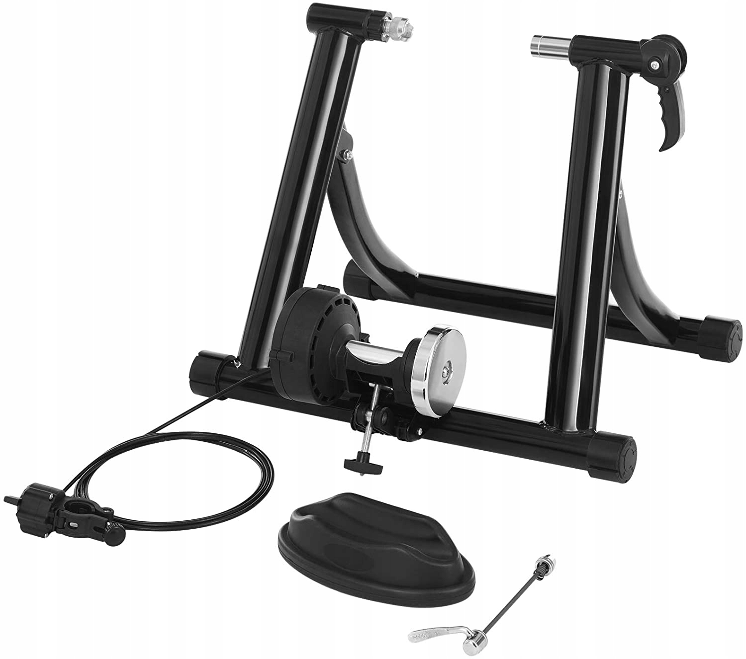 - Швидкий і стабільний: ви можете легко прикріпити свій велосипед до цього роликового тренажера за допомогою швидкого з’єднання уповільнення роботи пристрою. Завдяки 4 нековзким ніжкам і міцній сталевій рамі цей роликовий тренажер забезпечує стабільне тренування вдома