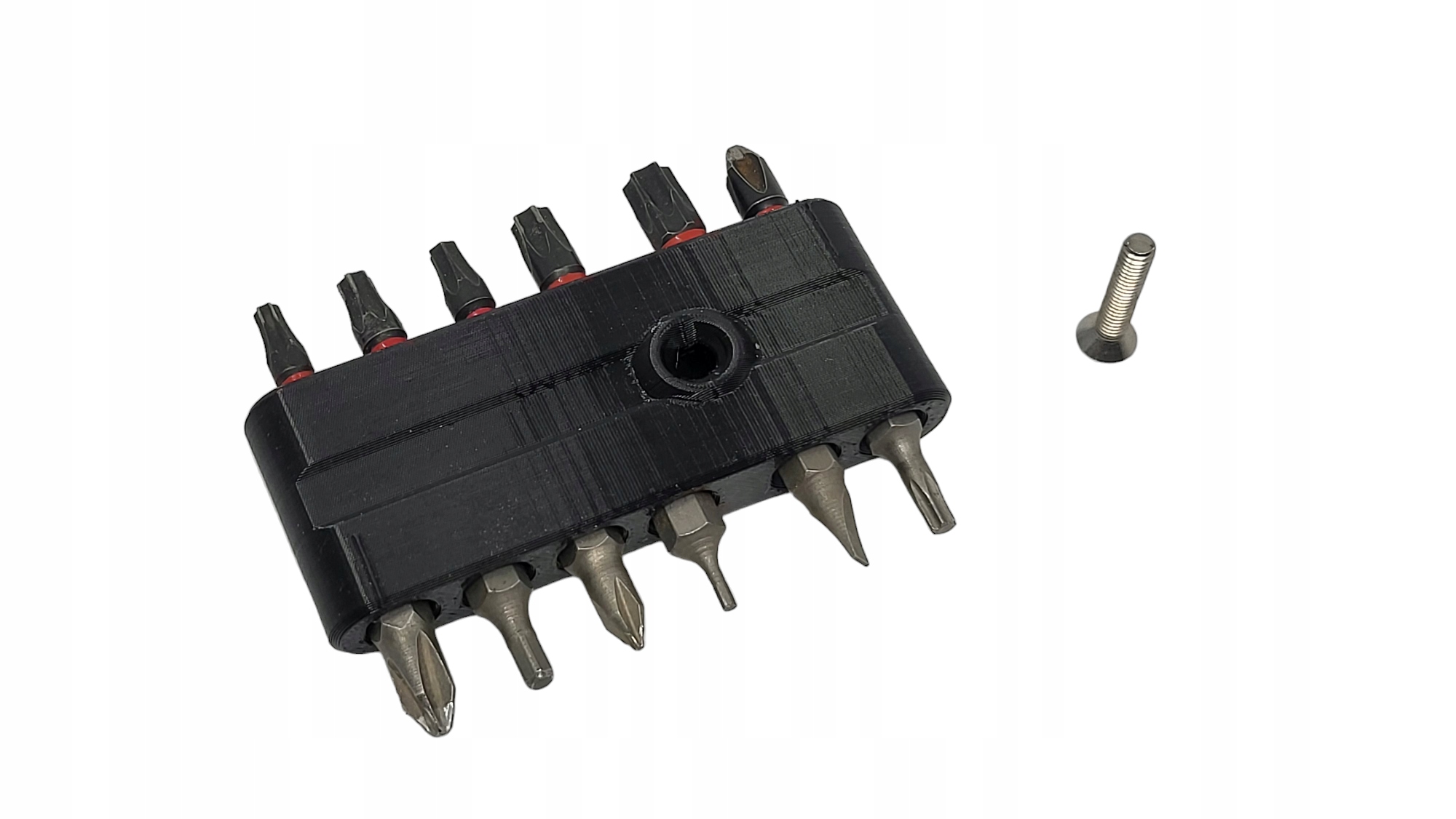 Дозволяє зручно та швидко прикріпити до 12 біт. Біти утримуються магнітами, розташованими внизу, що гарантує, що біти не випадуть під час використання інструменту.