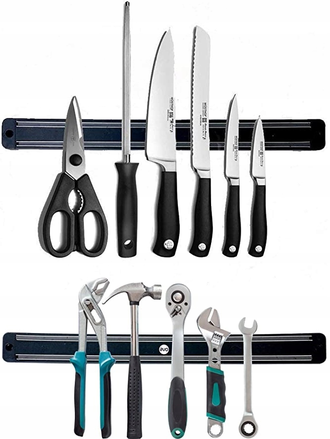 Смужка також добре працює на кухні як органайзер для ножів та іншого кухонного начиння, заощаджуючи гроші. місце на столі.