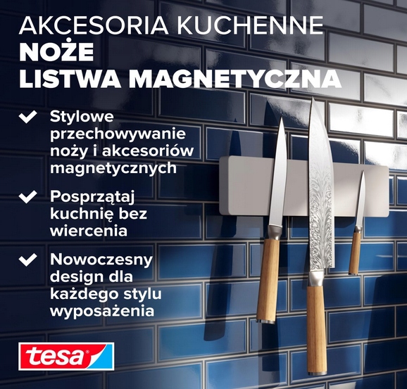 - Вміст: стрічка магнітного ножа, монтажний адаптер, клей tesa Power.kit, рівень - підходить для плитки, скла, металу, натурального каменю, бетону, дерева та багатьох видів пластику