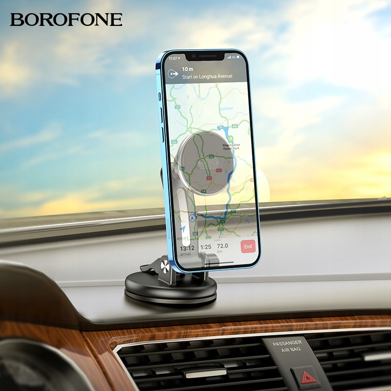 BOROFONE BH64 Graceful — це магнітний тримач для телефону, який підвищує безпеку водіння, оснащений регульованою рука довжиною приблизно 12 см, прикріплена до панелі приладів або центральної консолі автомобіля за допомогою силіконової присоски з клеєм, з магнітною монтажною поверхнею діаметром приблизно 5 см.