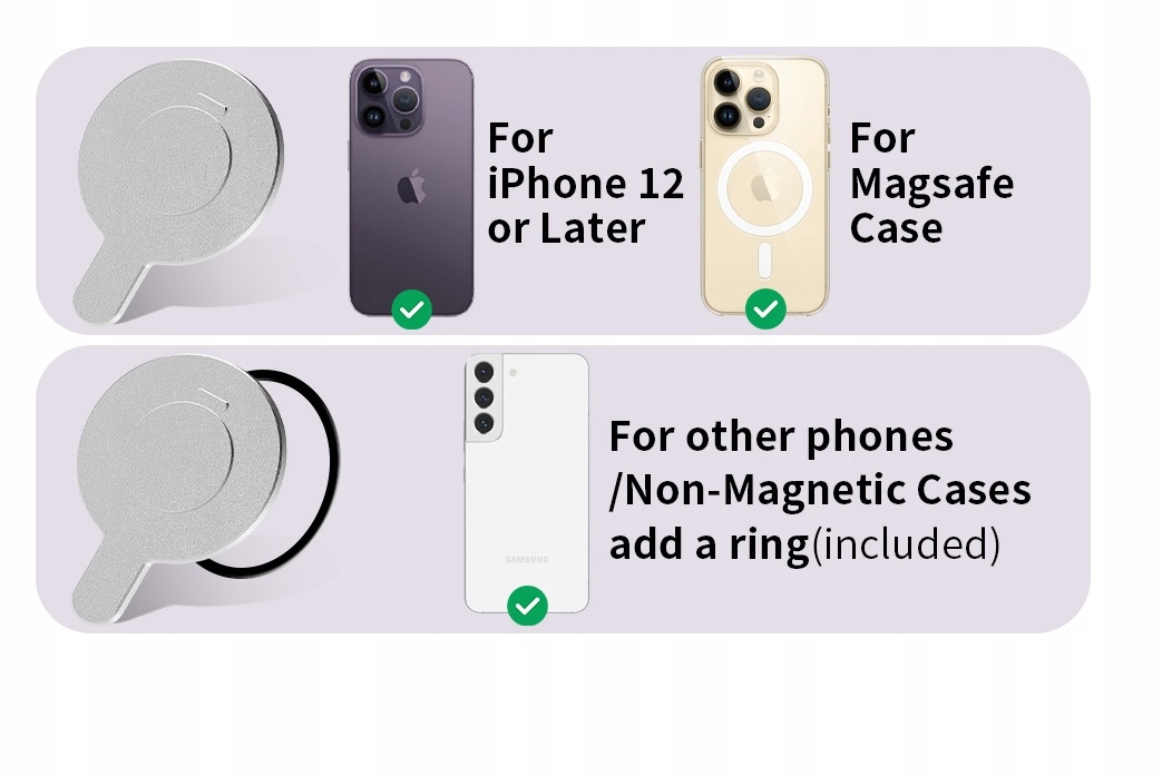 Наклейка з металевим кільцем для використання на смартфонах Android або немагнітних футлярах.