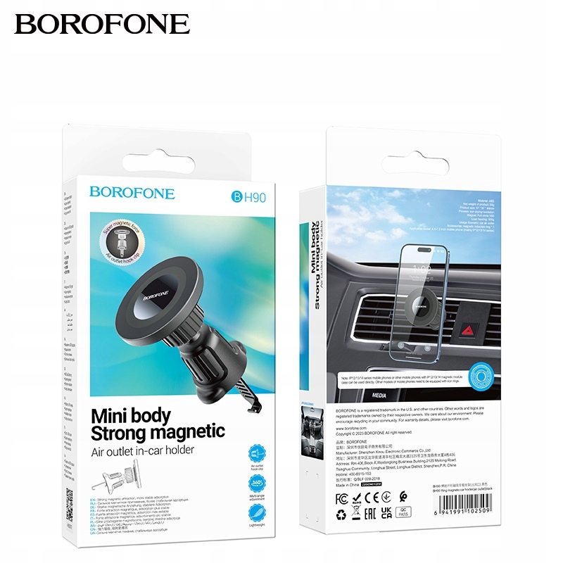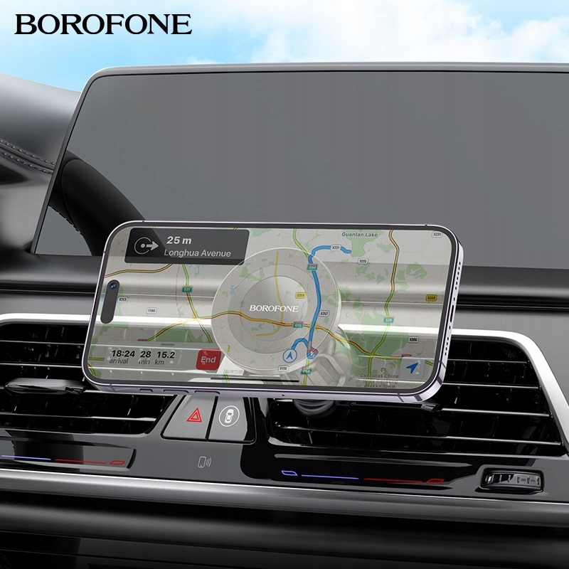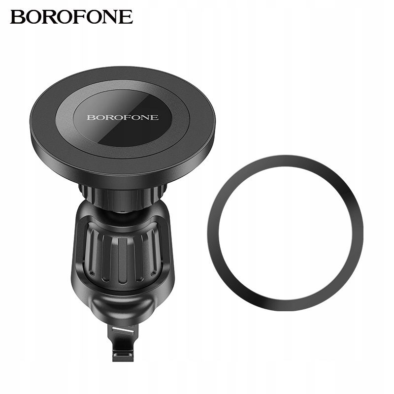 BOROFONE BH90 Ring це магнітний телефон/тримач телефону, який підвищує безпеку водіння телефон, встановлений на вентиляційній решітці автомобіля за допомогою затискача з регульованим тиском, оснащений кульовим шарніром, що дозволяє монтувати пристрій під кутом 90 градусів з поворотом на 360 градусів для ще кращої адаптації до потреб водія.