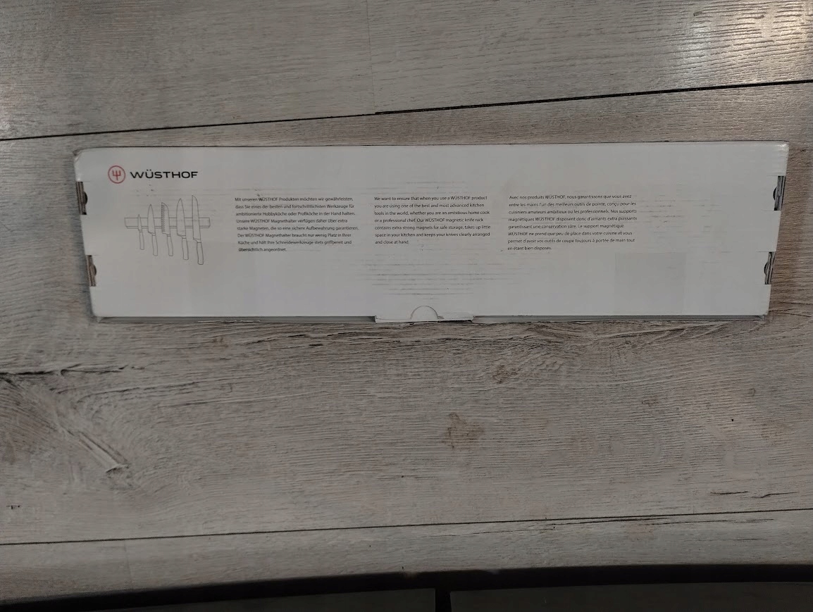 Нехай ваші ножі сяють на цьому розкішному магнітному тримачі від Wusthof. З місцем для 5 ножів ви завжди матимете під рукою найважливіші моделі. Магніт для ножа виготовлений з деревини ручної роботи з чорним покриттям. Логотип Wusthof помітний у вигляді штампів, відбитих на дереві, тож ви завжди знаєте, куди повісити ніж.