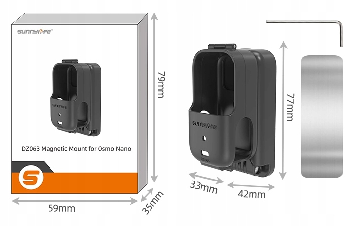 Тримач був розроблений для повної сумісності з моделлю DJI OSMO NANO. Його форма та система кріплення ідеально адаптуються до конструкції камери, забезпечуючи стабільне та безпечне з’єднання без будь-яких люфтів. Точна посадка гарантує зручність використання та повну підтримку функцій камери незалежно від вибраного монтажного положення.
