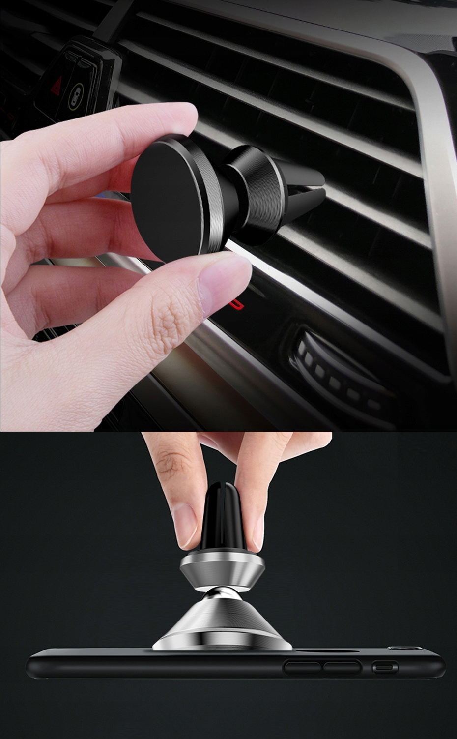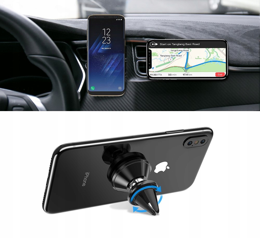 Новий магнітний тримач на вентиляційній решітці. Тримач є універсальним, тобто підходить для більшості телефонів, навігаційних пристроїв і планшетів. Ідеально працює на телефонах з плоскою спинкою. Завдяки технології 360 + 3D тримач дозволяє розташувати телефон під найкращим кутом. Перевагою тримача є його невеликі розміри - він надзвичайно компактний.