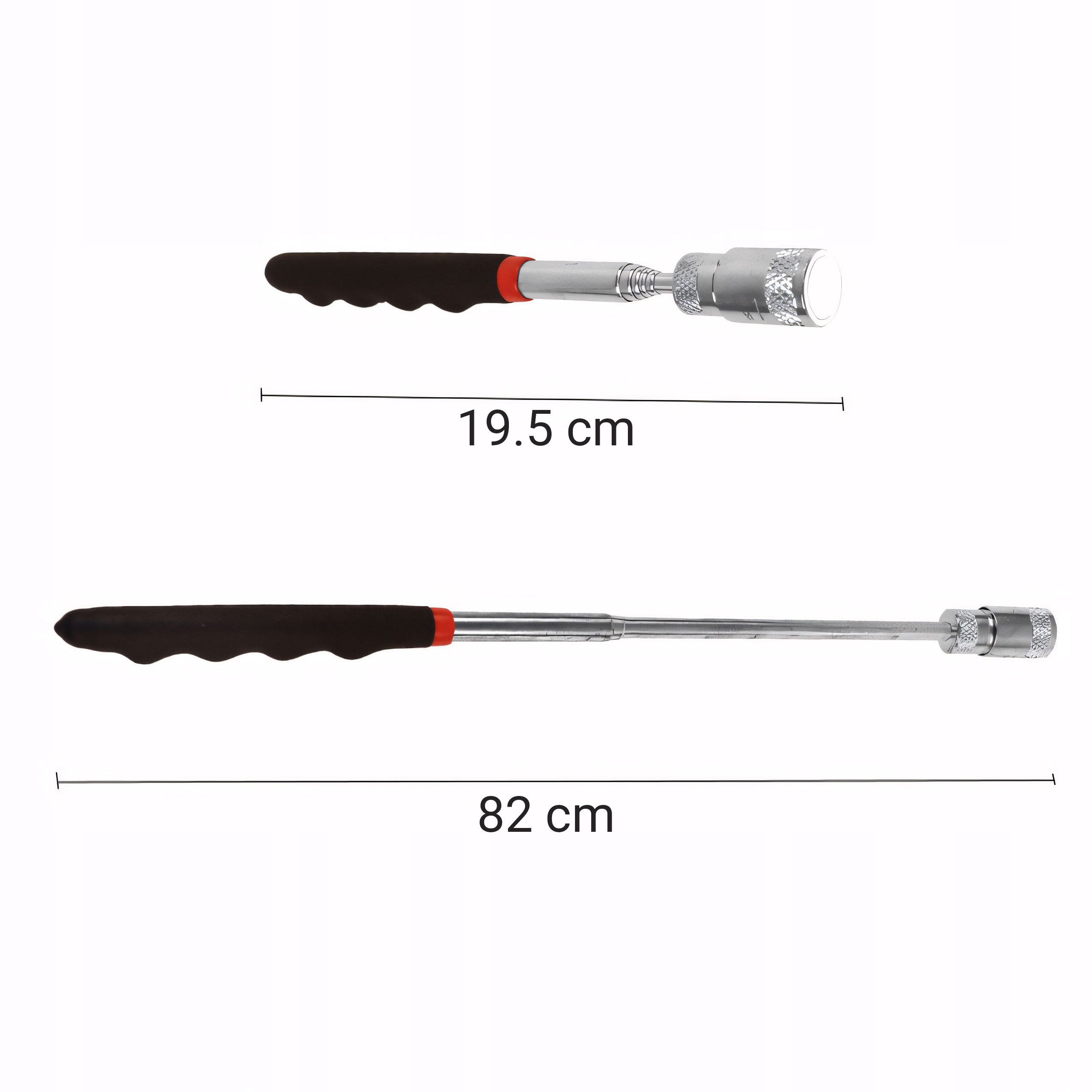 Великою перевагою нашого магнітного захоплення є його телескопічна конструкція, яка дозволяє нам діставатися до важкодоступних предметів, не пересуваючи меблі. Завдяки цьому ми можемо піднімати металеві речі з підлоги, не нахиляючись. Цей захват регулюється по довжині від 19,5 см до 82 см. Компактні розміри в складеному вигляді дозволяють легко носити в кишені.