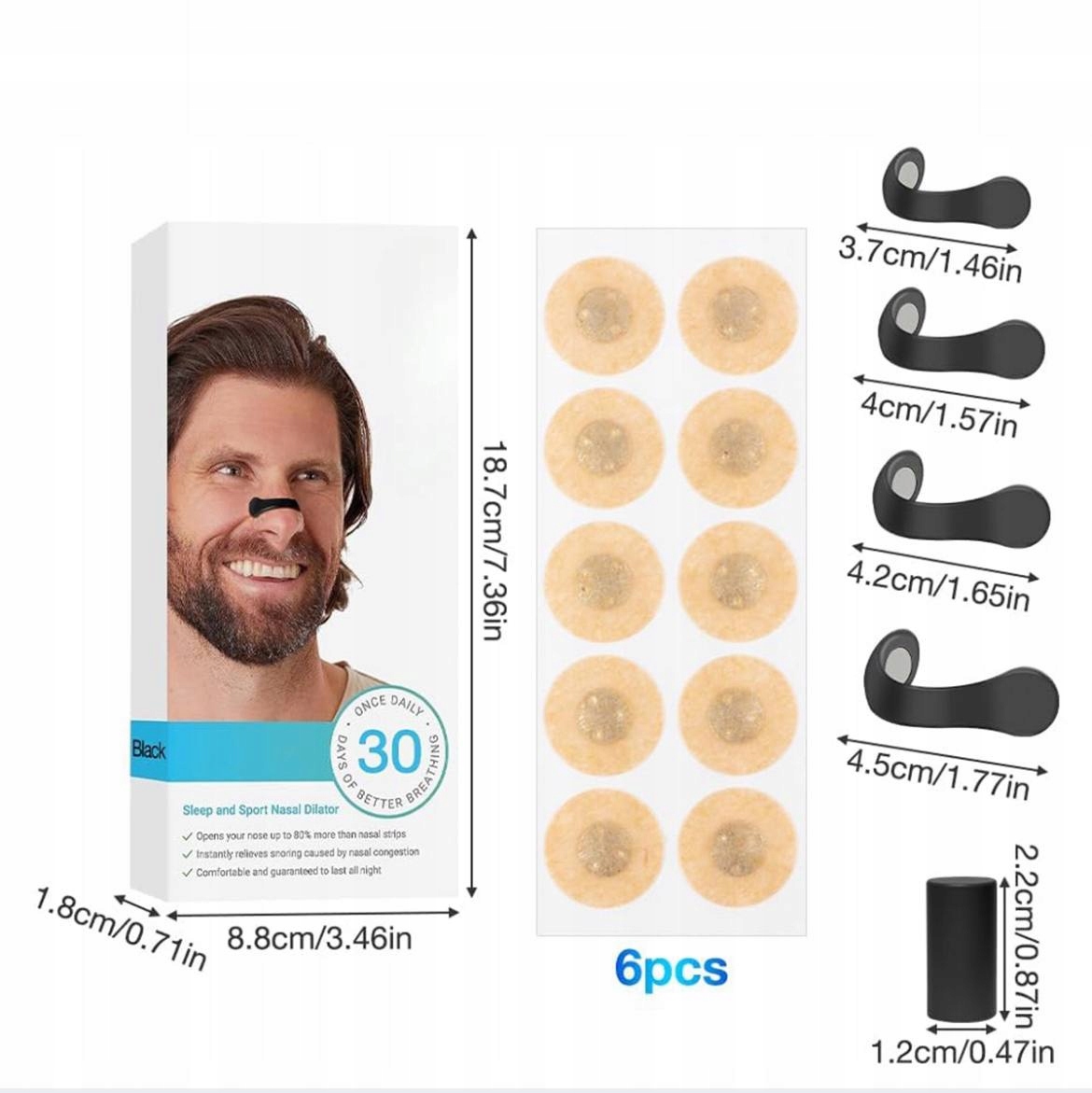 Запатентована технологія - -запатентована система розширення носа з двома окремими носовими смужками (закладками) та сильною смугою магнітних рельєфів, які разом відкривають носовий канал до максимальної ємності. Наш інноваційний дизайн надає кожному користувачеві оптимальний потік повітря через ніс та персоналізовану, зручну форму.