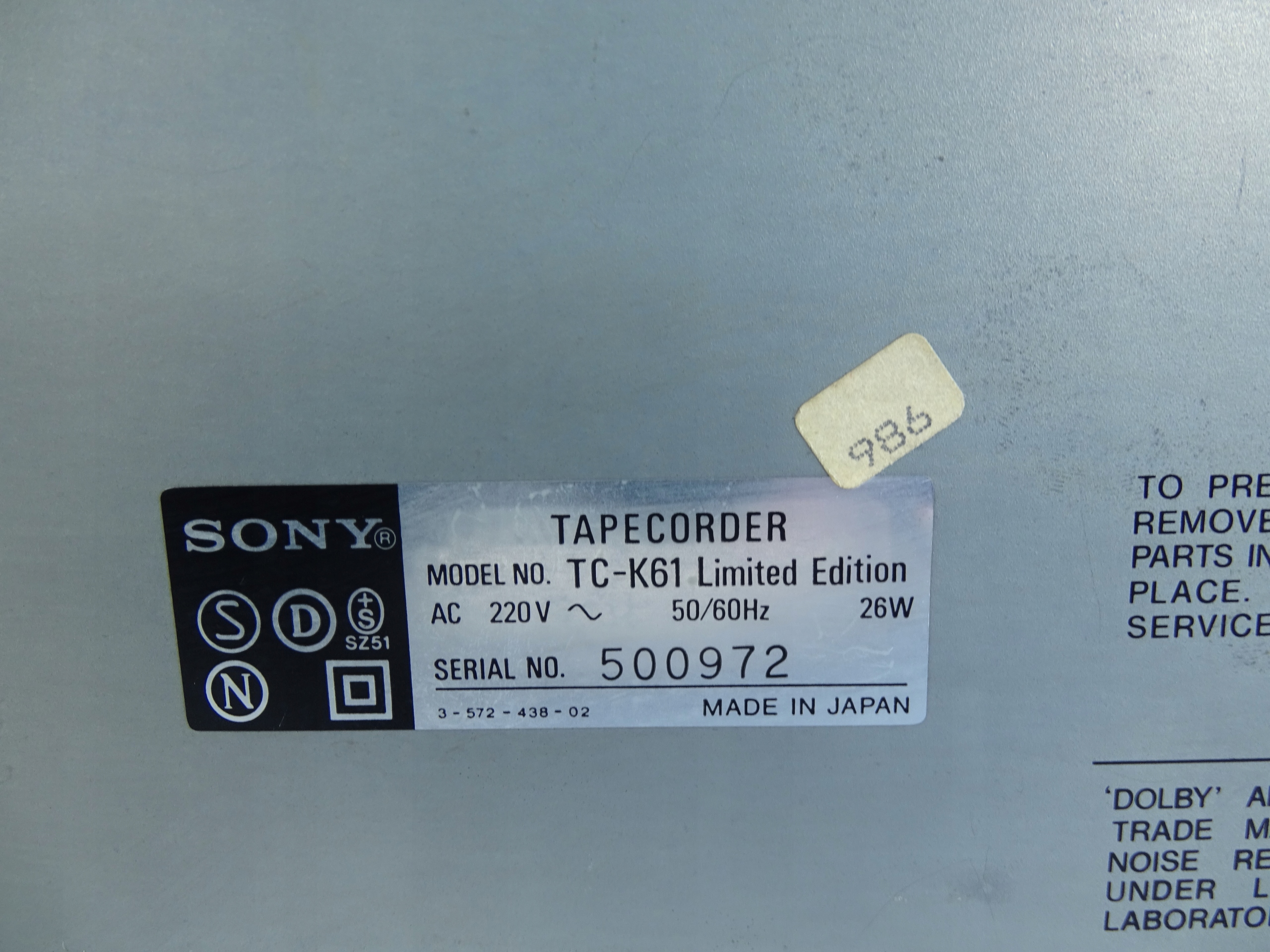 - Sony TC-K61 — це видатне вираження здатності Sony запроваджувати найновіші та найкращі стрічкові технології.