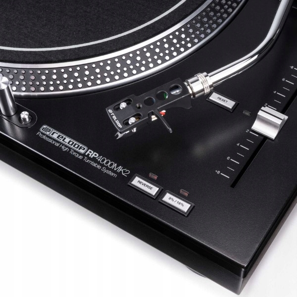Reloop RP-4000 MK2 має статично збалансовану S-подібну руку з гідравлічним підйомом і механізмом проти ковзання. Завдяки універсальному роз’єму передньої бабки (SME) можна під’єднати багато різних типів картриджів.