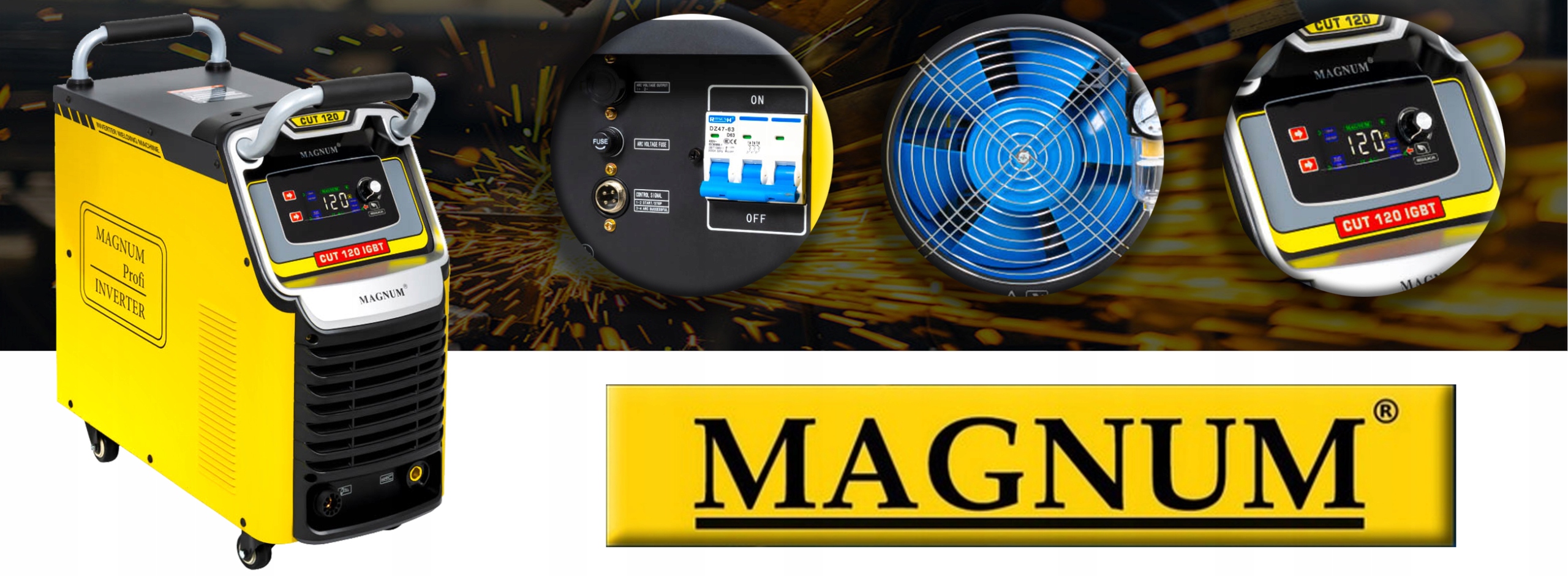 Пристрій MAGNUM CUT 120 побудований на основі використання новітніх технологій Транзистори IGBT, що забезпечує зменшення електромагнітних перешкод, малі втрати потужності, підвищення ефективності та надійності джерела живлення та зменшення споживання енергії. Фреза оснащена захистом від теплового перевантаження. Його перевагами є мала вага та плавне регулювання струму різання, що забезпечує високу якість різання матеріалу.