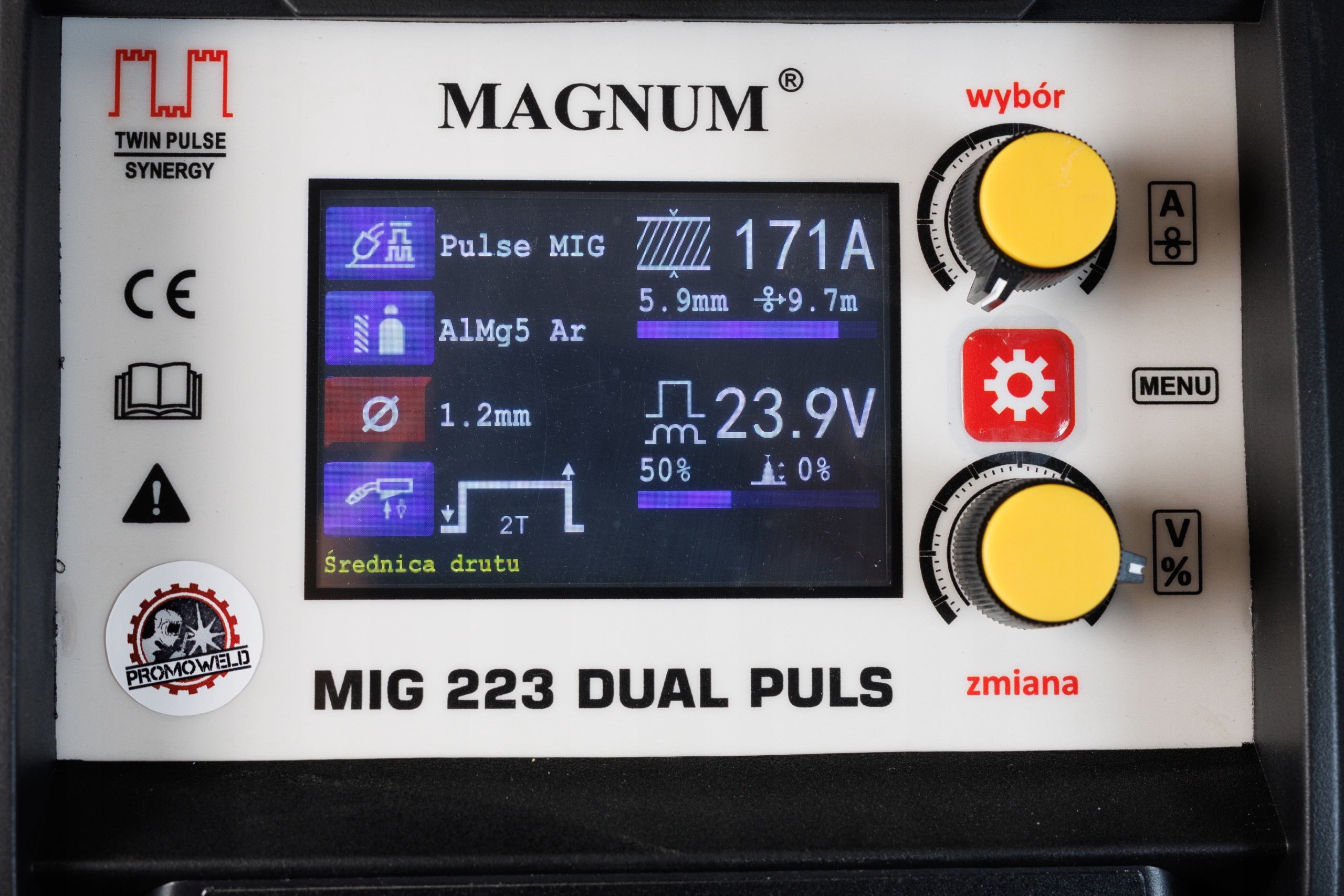 MAGNUM MIG 223 DUAL PULS SYNERGY ЗВАРЮВАЛЬНИЙ АПАРАТ MMA TIG ALU, ДРІТ, РЕДУКТОР