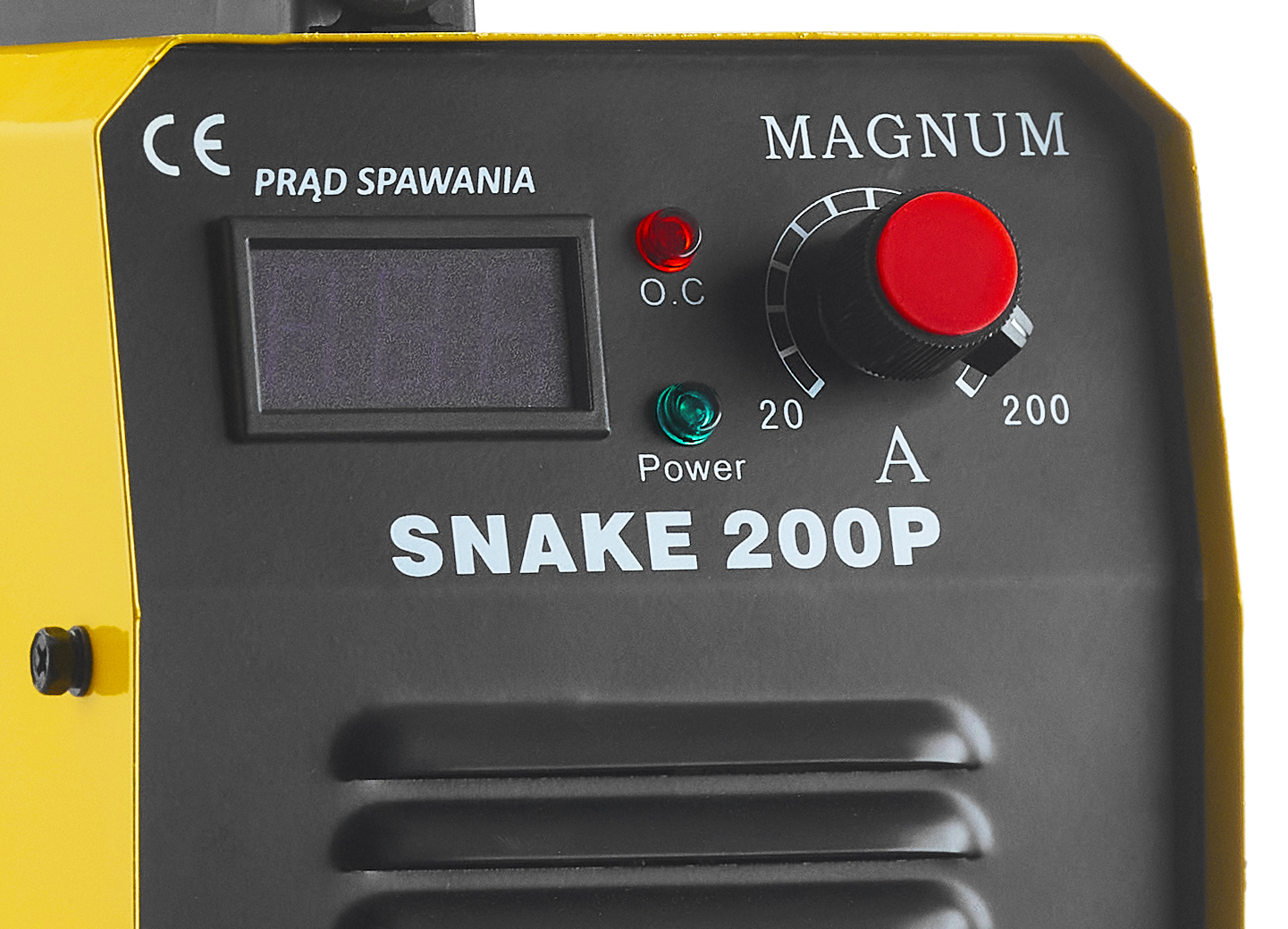 Інверторний зварювальний апарат Magnum SNAKE 200P потужністю 200Aдозволяє виконувати ручне зварювання MMA електродами з покриттям, зварювання звичайної та високоякісної конструкційної сталі, суднової та котлової сталі, зварювання нержавіючої сталі, холодне та гаряче зварювання чавуну.