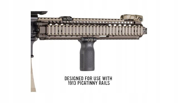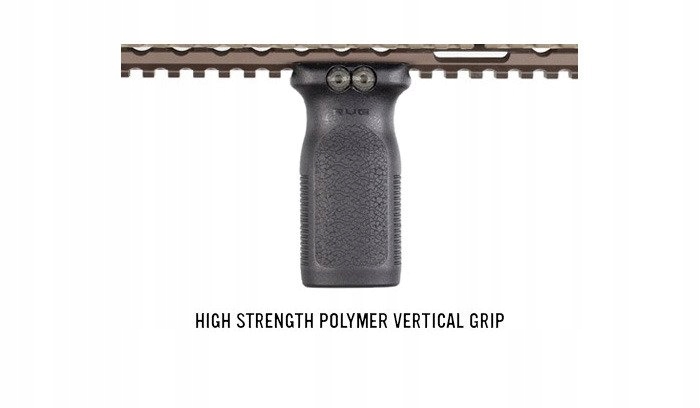 Вертикальна ручка RVG Rail, встановлена на рейці Picatinny / RIS 1913 року. Виготовлений із текстурованого полімеру відомою американською компанією Magpul Industries, що спеціалізується на створенні аксесуарів для вогнепальної зброї.
