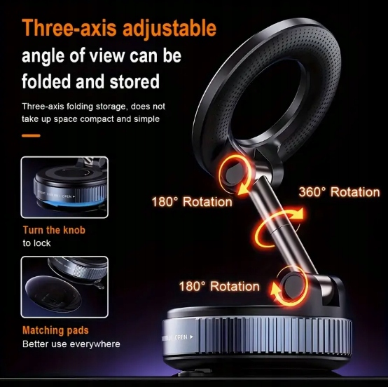 Магнітний тримач можна скласти та обертати на 360°, що дає вам багато свободи в конфігурації. Розташуйте телефон під ідеальним кутом однією рукою. Зробіть свою поїздку безпечною та комфортною.