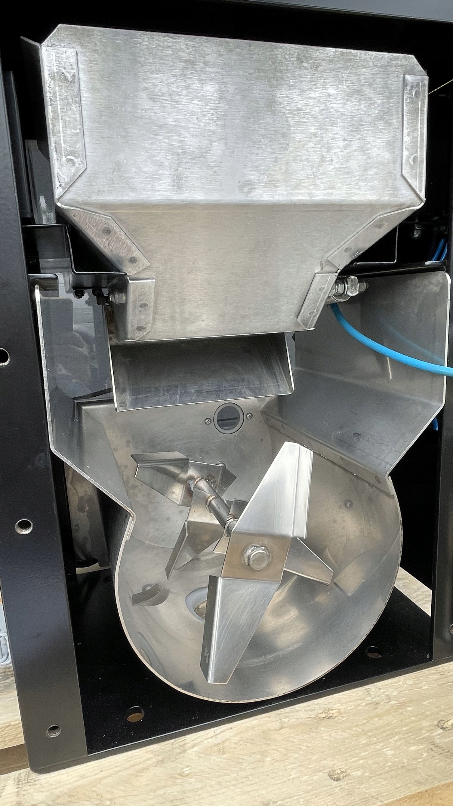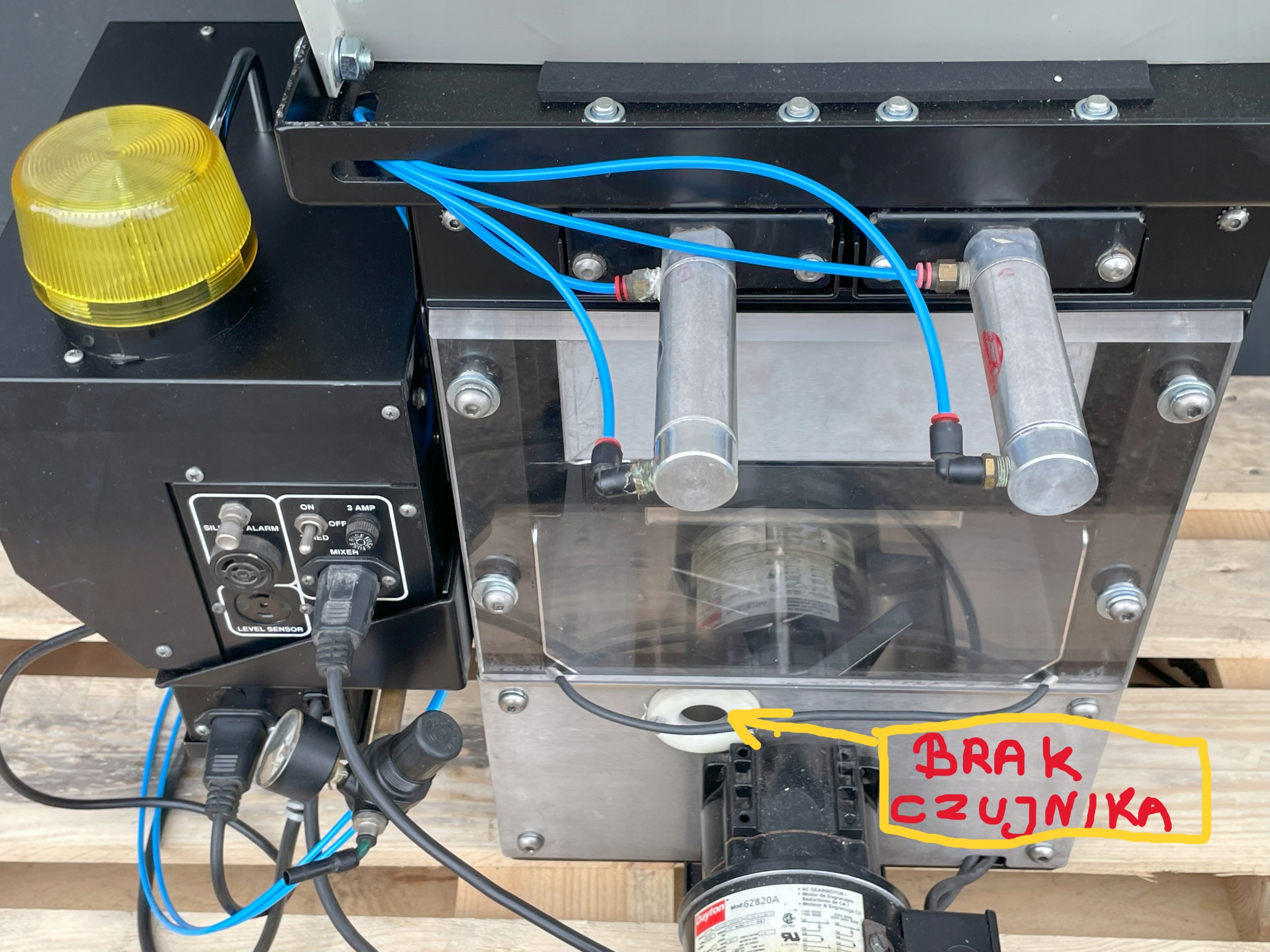Я не фахівець з цього типу обладнання, тому найкраще організувати особистий пікап і спостерігати за блендер на місці з людиною, яка знає такі машини. Мої знання базуються на основній інформації з Інтернету. Пристрій здається завершеним, за винятком відсутнього датчика. Крім того, набір включає пневматичну засувку, яка відображається у виробника як додатковий варіант. Він застосовується до пристрою під ним. Це було тимчасово відкручене для легшого транспорту.
