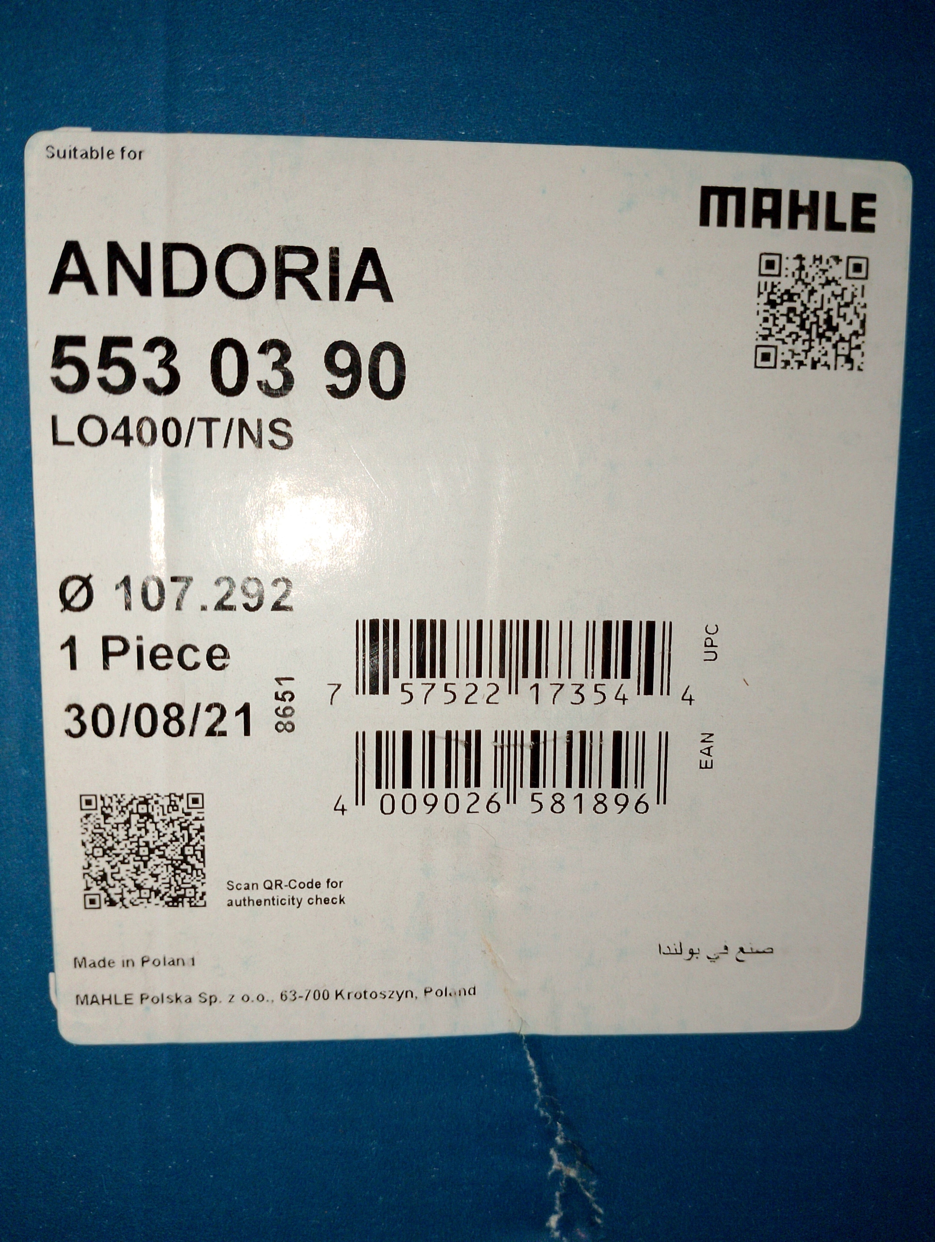Оплачивая «Mahle 553 WT 03 00 Гильза цилиндра SW400 553WT0300» данное изделие из «Гильзы цилиндра» вы можете быть уверены, что после оформления заказа, доставки в Украину, вы получите именно то, что заказывали, в оговоренные сроки и европейского качества.