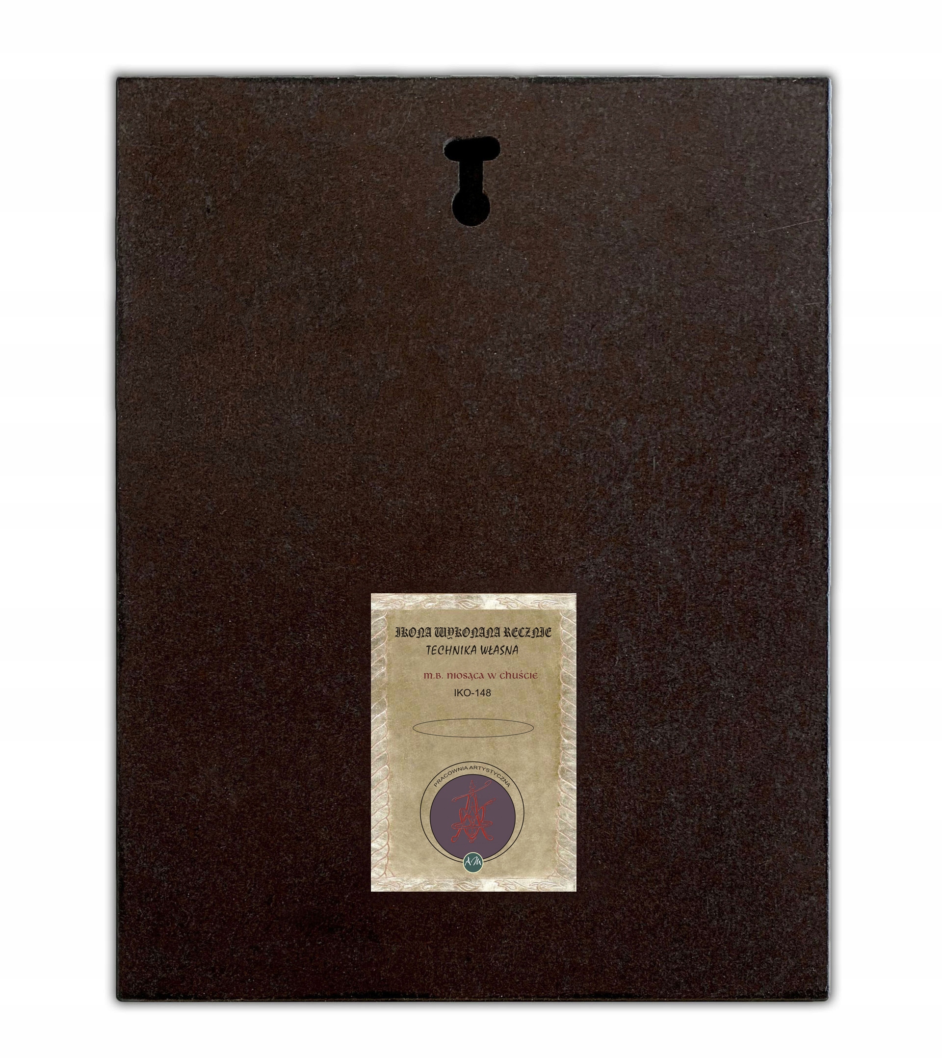 Представлена ікона виготовлена вручну на основі товщиною 18 ммі захищена відповідними препаратами,які запобігають деформації в холодних і вологих приміщеннях.