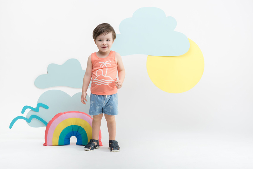 Бавовняна дитяча майка літнього лососевого кольору. Спереду ми розмістили принт острова з пальмою, виготовлений за допомогою безпечного методу фарби на водній основі, що забезпечує довговічність навіть після багатьох прань. Футболку можна сміливо поєднувати з іншим одягом колекції Sun & Fun, створюючи модні літні стилі. Майка ідеально підходить як для спекотних літніх днів, так і в холодні місяці як додатковий шар під блузку або комбінезон. Варто пам'ятати про це, комплектуючи гардероб малюка.