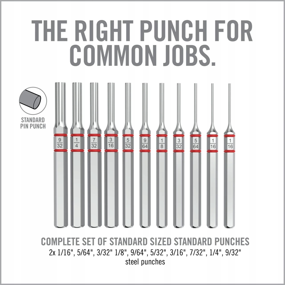 Набір має висувний вбудований магнітний штифтовий пускач. Завдяки йому можна швидко почати забивати шпильки, а потім завершити процес відповідним пробійником. Сам молоток виготовлений з цілісного шматка кованого металу, а рукоятка має контурну та прогумовану поверхню для кращого керування. Головки молотка бувають: сталь, нейлон, латунь, гума та м’який полімер.