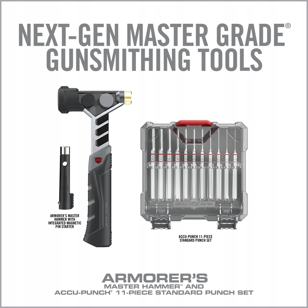 Повний набір інструментів для розбирання та подальшого складання окремих елементів зброї. Real Avid приділяє велику увагу якості роботи зі зброєю користувача, результатом чого став Armorer's Master Hammer і Accu-Punch Standard Pin Punch Set. Він має 11 пуансонів у спеціальному футлярі, молоток із 5 головками та пристрій для обробки магнітних штифтів, захований у ніжці молотка.