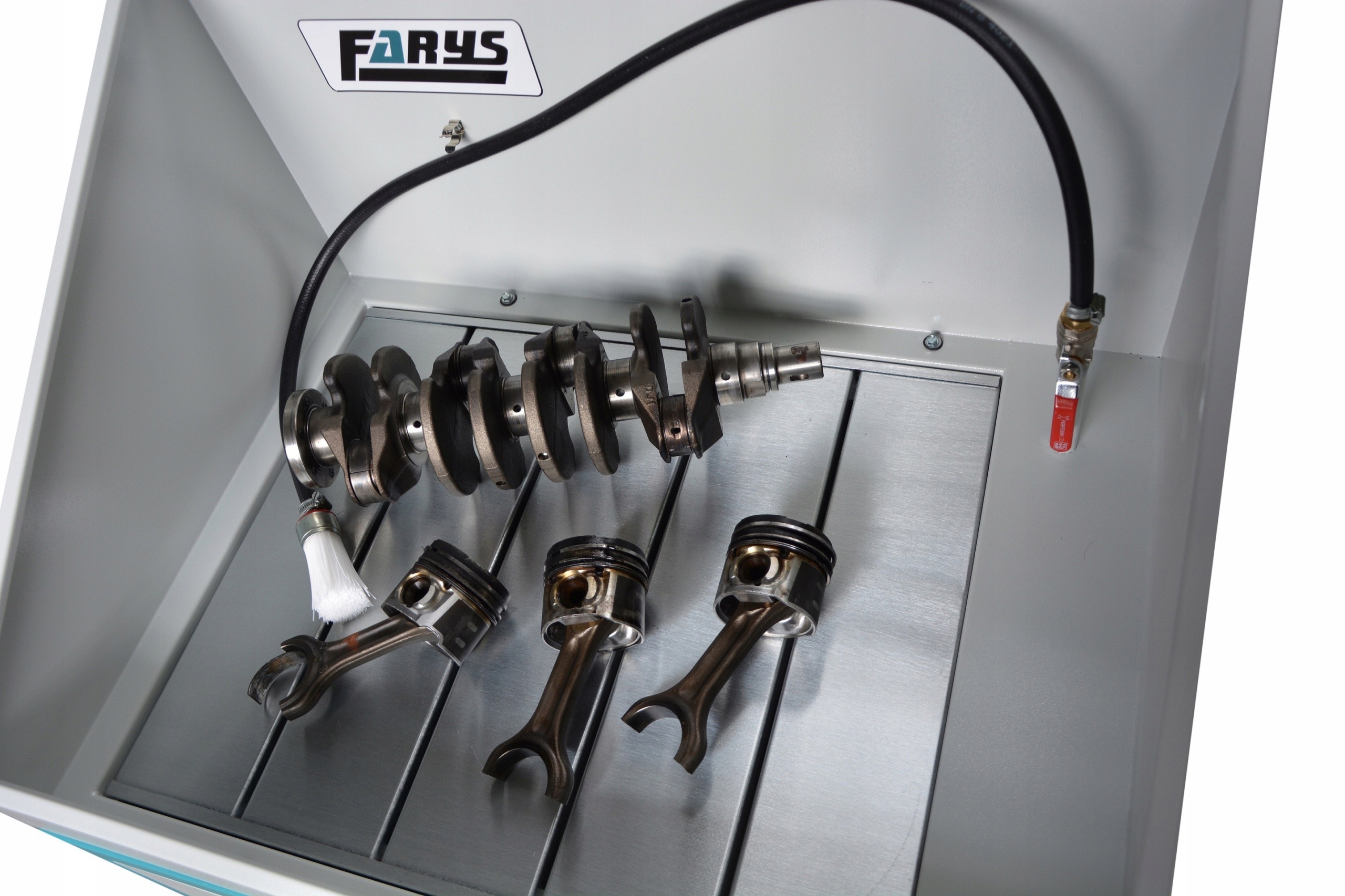 важке тверде забруднення гравітаційно падає на спеціальне утворене дно ванни. Легкіші сполуки, що мають нафту, протікають разом з промитою рідиною до ствола, під робочою стійкою. Більш важкі сполуки осідають на дні ствола, а миття рідини (як легше) повертається до циркуляції. Розмір потік рідини через пензлик підлягає ручному регулюванні на потоковому клапані.