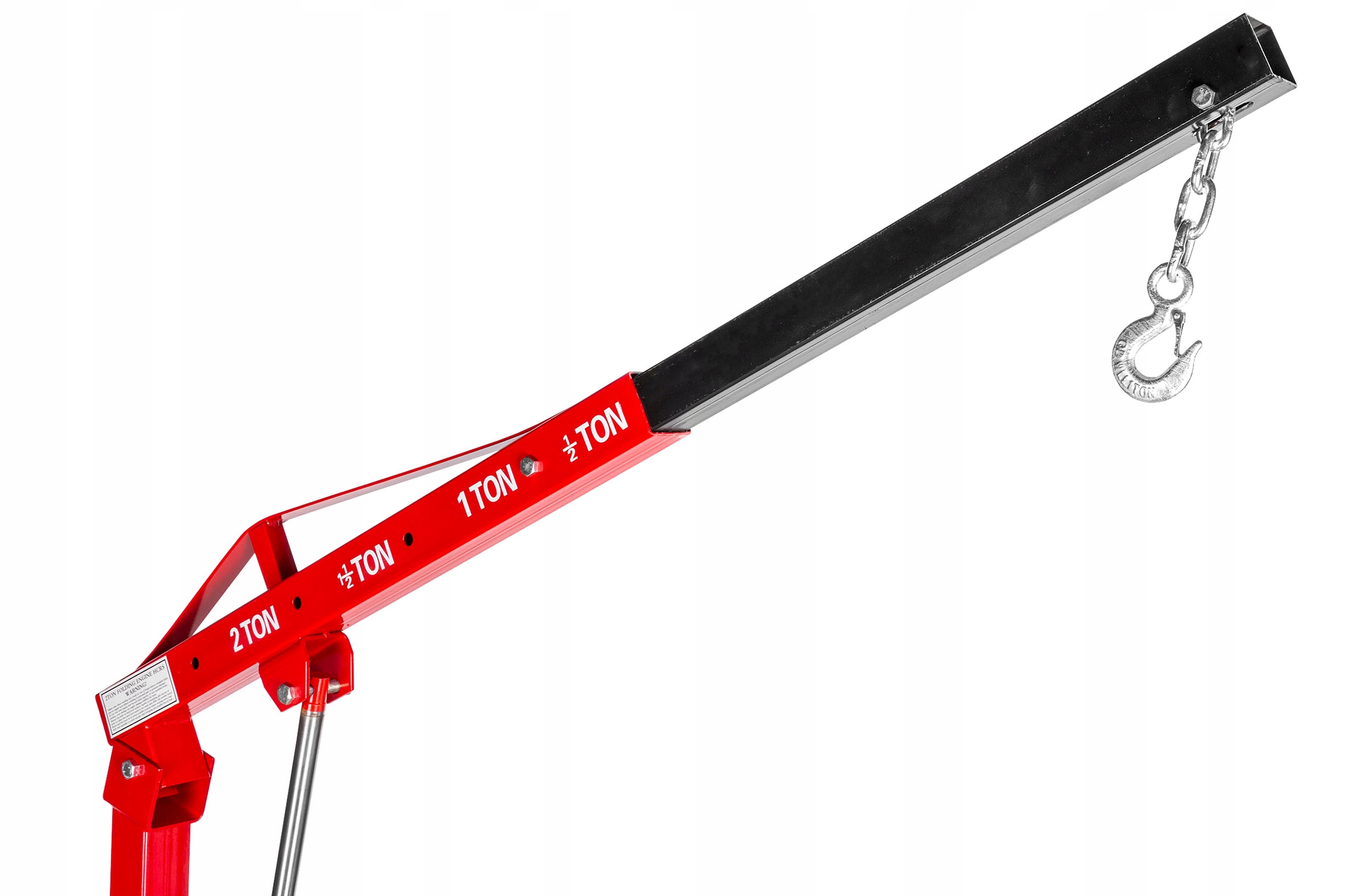 Стріла закінчується ланцюгом з гаком. Кран відмінно впорається зі своєю функцією при переміщенні важких предметів, пристроїв і демонтажу важких і громіздких деталей, таких як двигуни автомобілів.