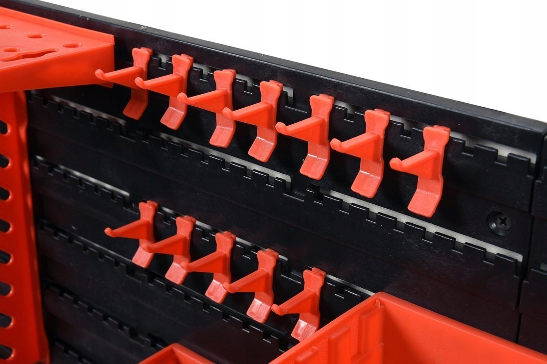 Включно з 4 невеликими полицями для дрібних предметів, наприклад, біт, і 4 полицями з отворами для викруток, стамесок тощо.