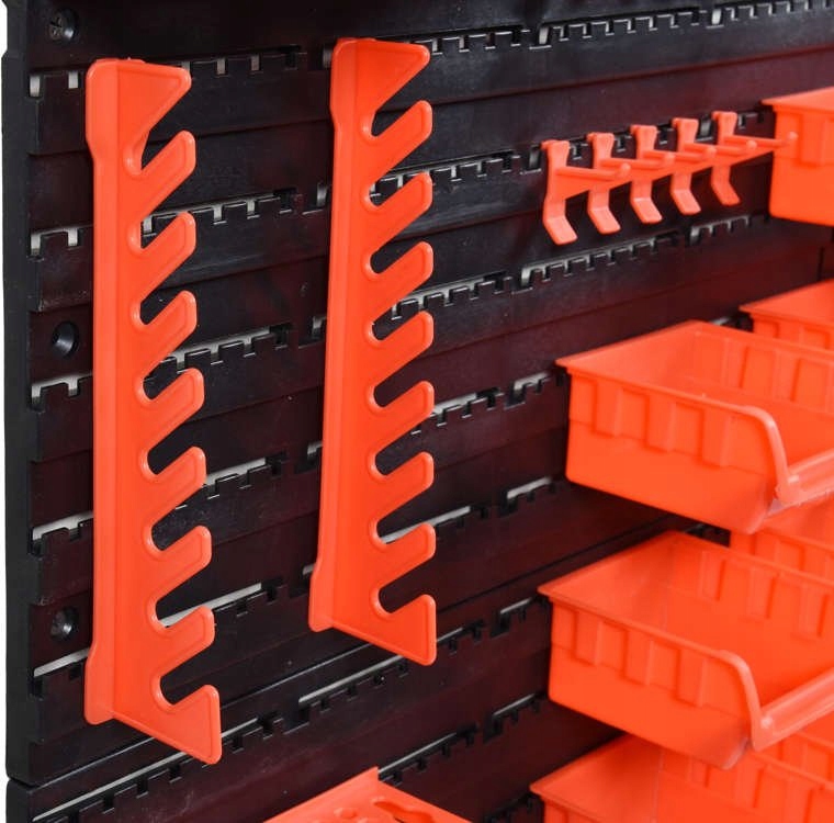 Дошка для зручного зберігання інструментів і дрібного приладдя в майстерні та гаражі. Це допомагає підтримувати порядок, а систему контейнерів і вішалок легко адаптувати під свої потреби.