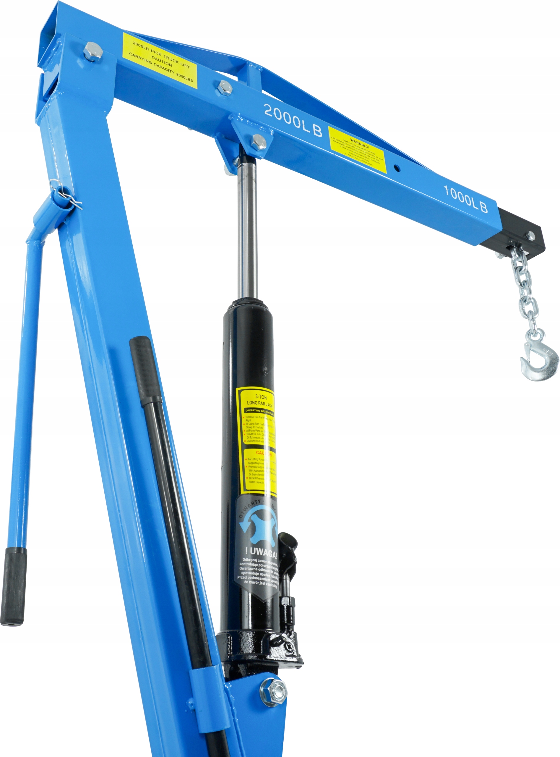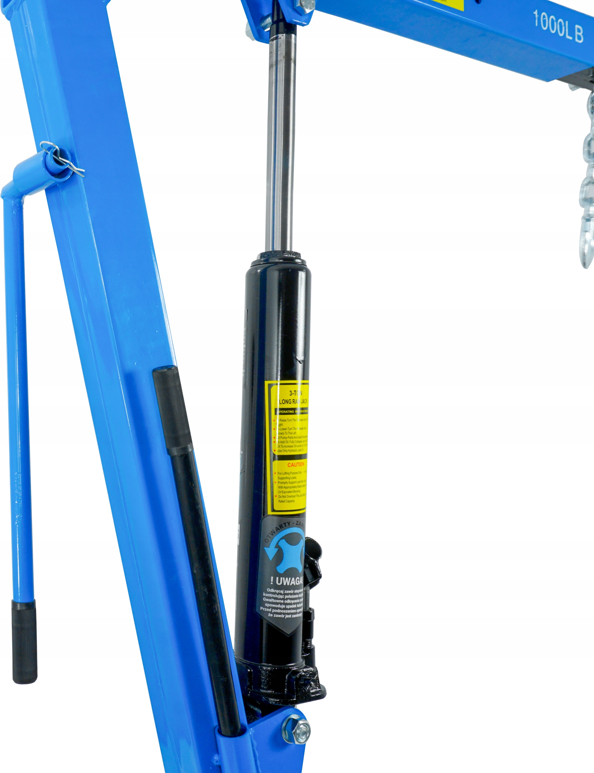 Поворотний кран із міцною сталевою конструкцією, що дозволяє піднімати елементи вагою до 1Т. Діапазон обертання 360 градусів. Підйомник оснащений монтажною пластиною, що дозволяє монтувати його на автомобілі або на землі в майстерні. Кран має висувну стрілу. Пристрій можна швидко скласти, тому він займає дуже мало місця.